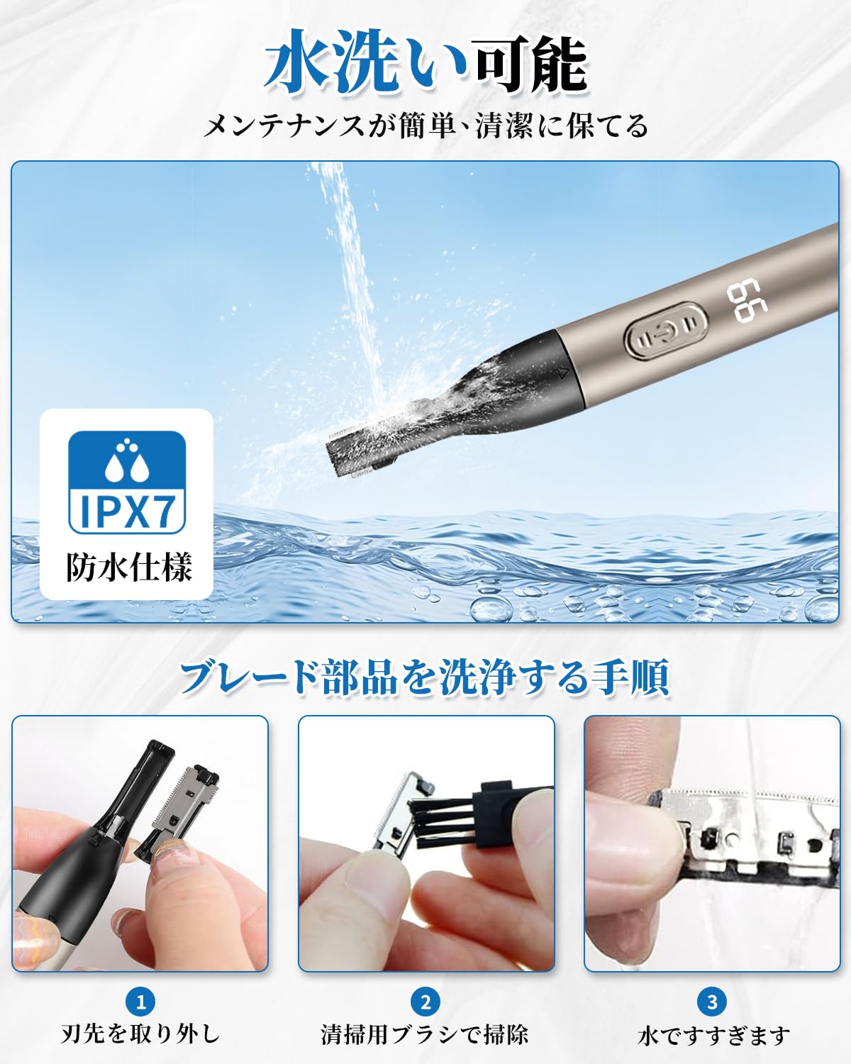* 【お手入れ簡単、1年間安心サービス顔そり】眉毛そり メンズ本体は便利な交換式なので、使用後はヘッドを外して直接水洗いでお手入れできます。 眉毛整える長期間の連続使用には、クリーニングブラシで皮脂などの汚れや刃に付着した毛を水で洗い流し、清潔な状態で使い続けることができます。