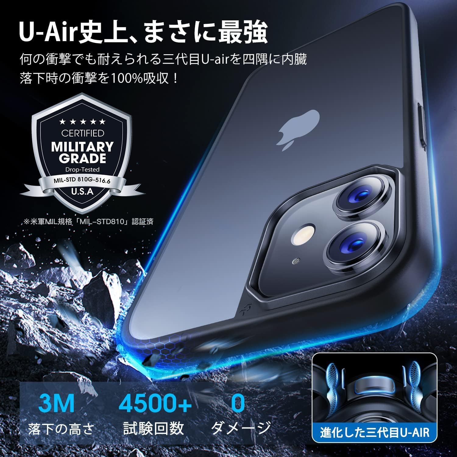 ■ 【米軍MIL認証済み・もしもの時も安心】米軍MIL規格「MIL-STD-810G」をクリアした強靭なiPhone 12 用ケース。