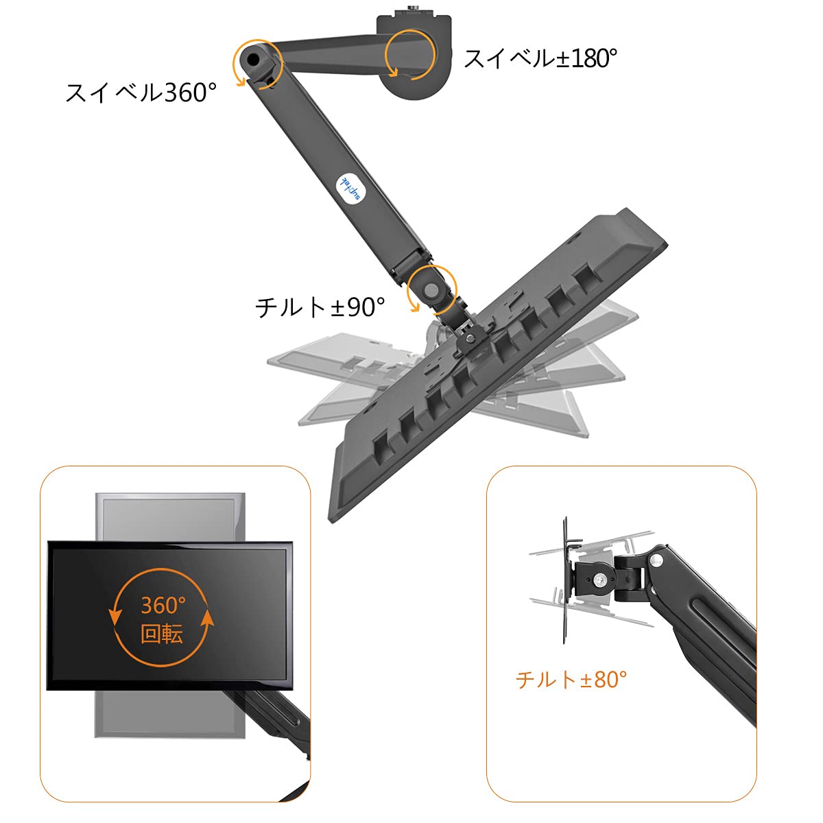 Suptek PC モニター アーム 液晶ディスプレイ アーム ガススプリング式 ガス圧式 モニタースタンド17~32インチ対応 最大耐荷重10kg 黒い MD81