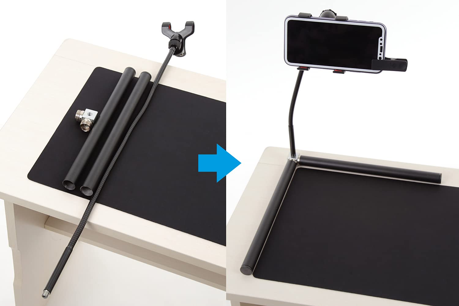 ■ 90度の形の足がついていて、テーブルや床に置くだけ