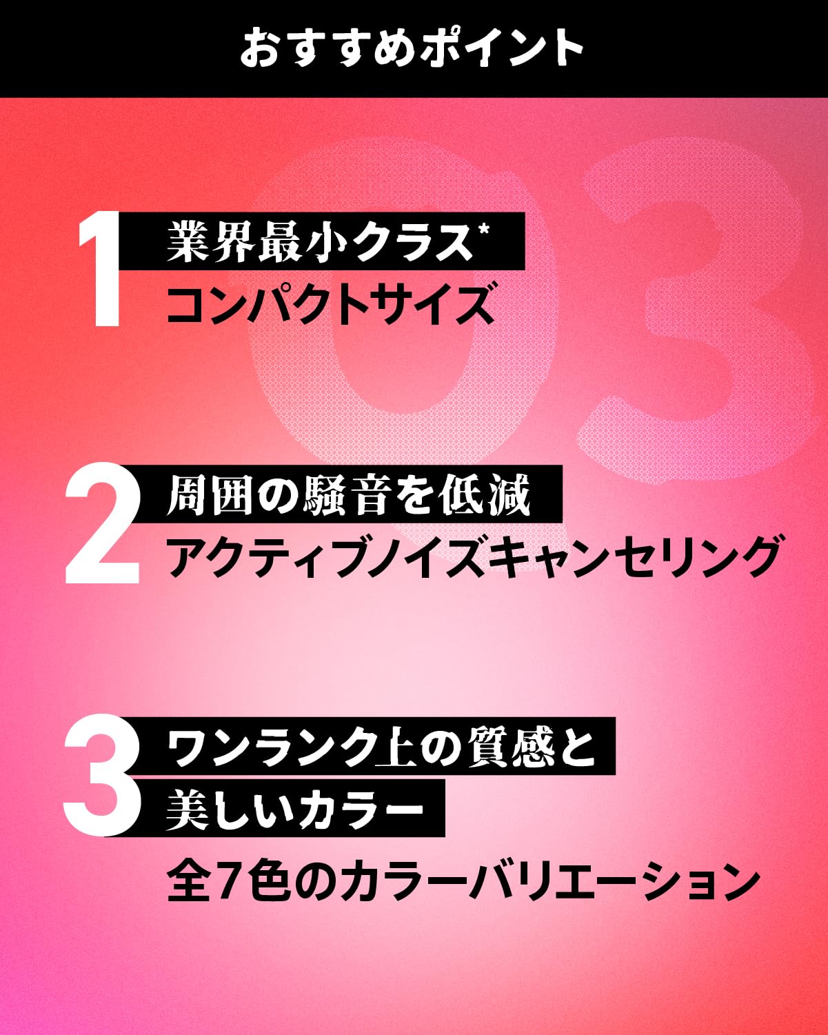 ■ ANC搭載業界最小クラス完全ワイヤレスイヤホン:徹底的にデッドスペースを排除することで、業界最小クラス*1のチャージングケースを実現しました。