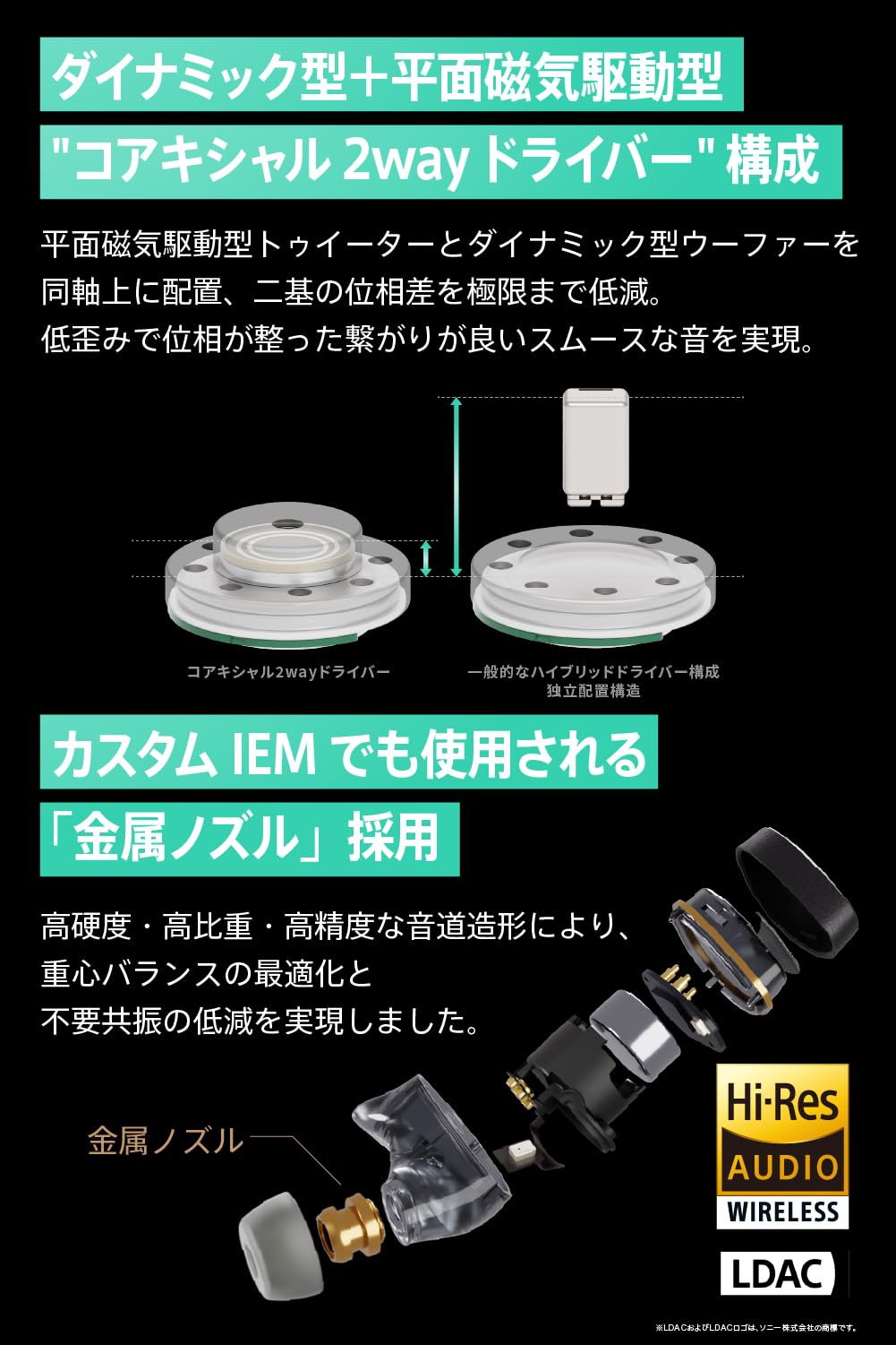 ■ 積層造形技術を使用した音響設計と優れた装着感:AVIOTのフラッグシップモデル、 Zシリーズにふさわしい装着感と音響設計を両立するため、カスタムIEM(イン・イヤー・モニター)に多用され、義肢のような精密で複雑な形状を要求される製品にも使用される、積層造形技術を用いてイヤホン本体下部のシェルを造形