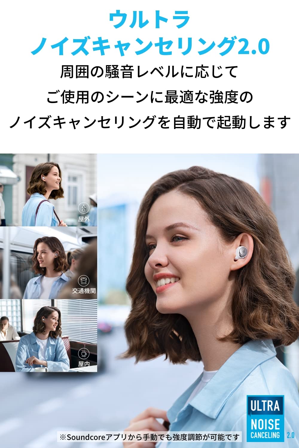 ■ 耳にすっぽり収まるフィット感:ノイズキャンセリング機能搭載のSoundcoreイヤホン史上最小サイズを実現。