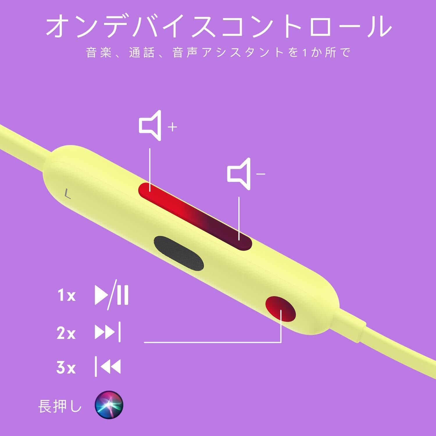 ■ 音楽、通話、音声機能のために統合されたオンデバイスコントロール