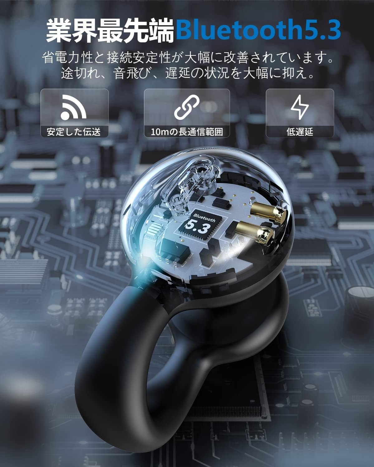 イヤーカフ特徴的な構造で、耳を塞がないため周囲の音も聞こえます。