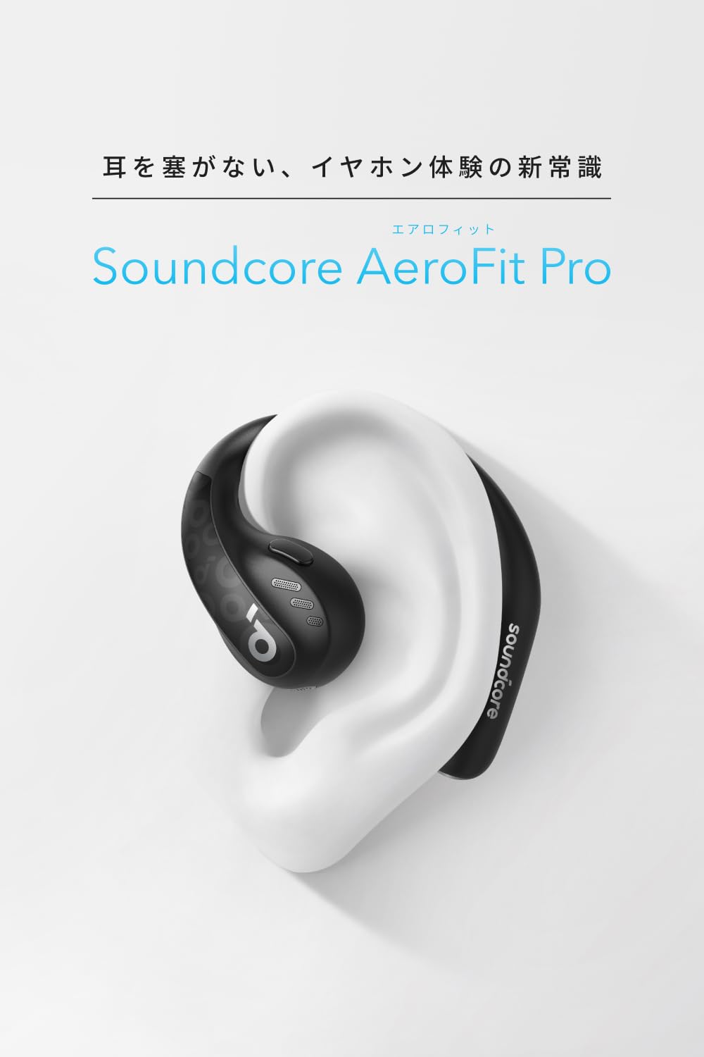 Anker Soundcore AeroFit Pro(Bluetooth 5.3)【オープンイヤー型ワイヤレスイヤホン / 3Dオーディオ / IP55防塵防水規格/ 最大46時間再生 / マルチポイント接続/PSE技術基準適合】ミッドナイトブラック