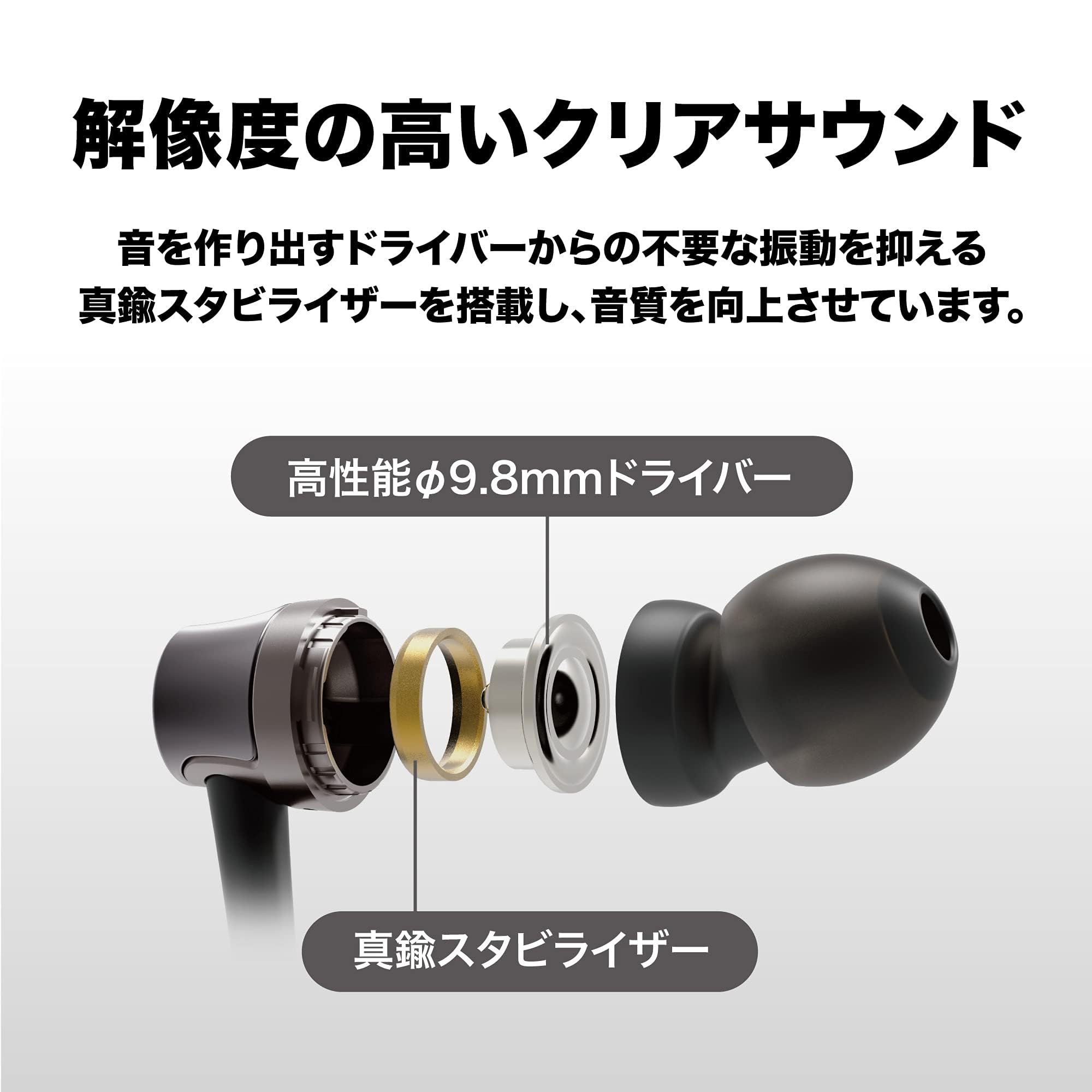 ■ 【解像度の高いクリアサウンド】音を作り出すドライバーからの不要な振動を抑える真鍮スタビライザーを搭載し、音質を向上させています。