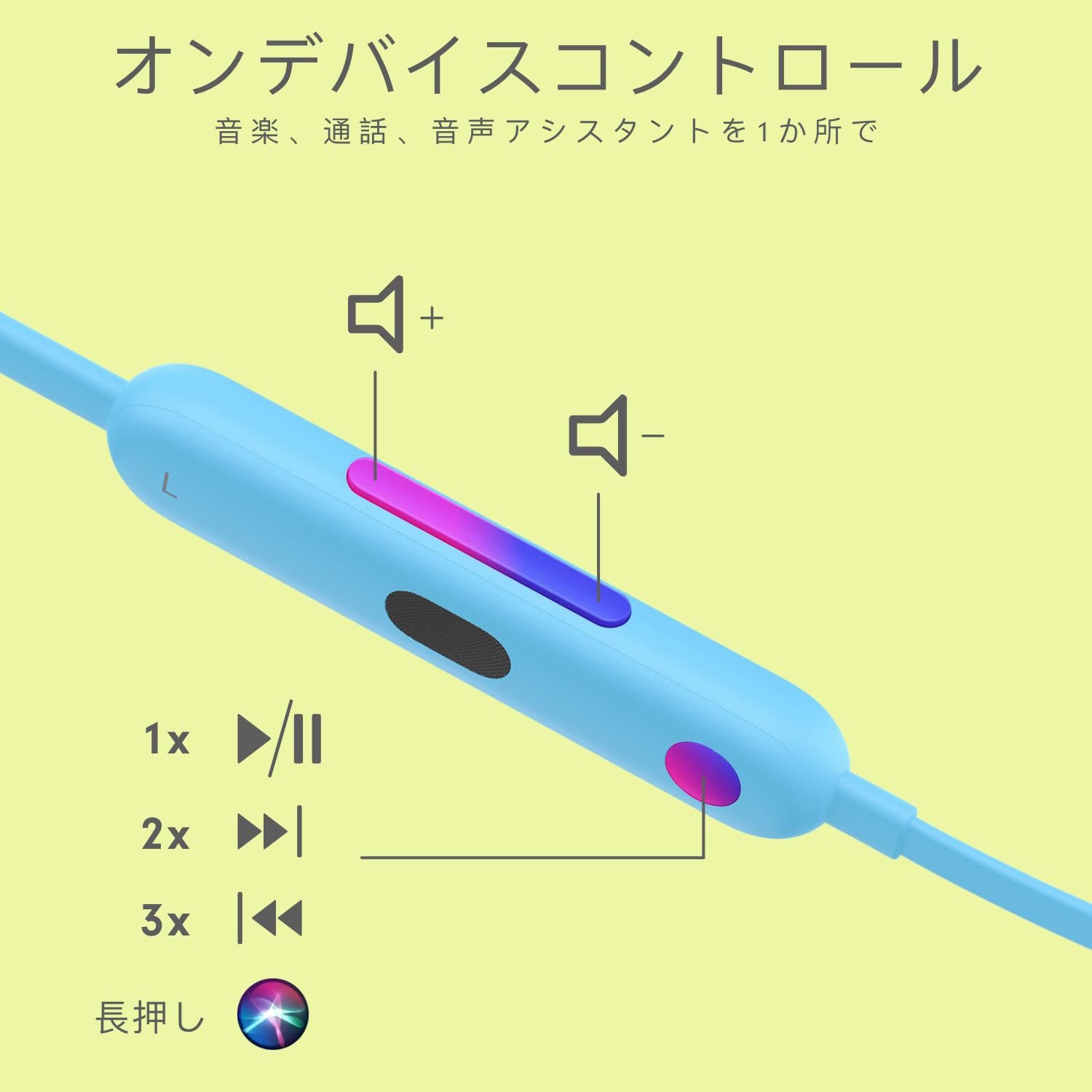 ■ 音楽、通話、音声機能のために統合されたオンデバイスコントロール