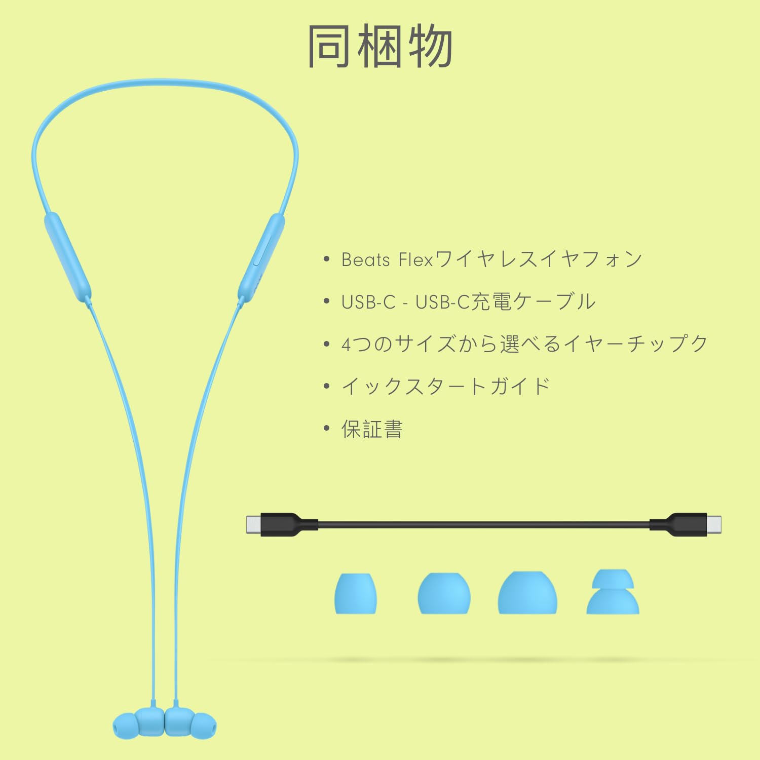 Beats Flex ワイヤレスイヤホン – Apple W1ヘッドフォンチップ、マグネット式イヤーバッド、Class 1 Bluetooth、最大12時間の再生時間 - ブルー