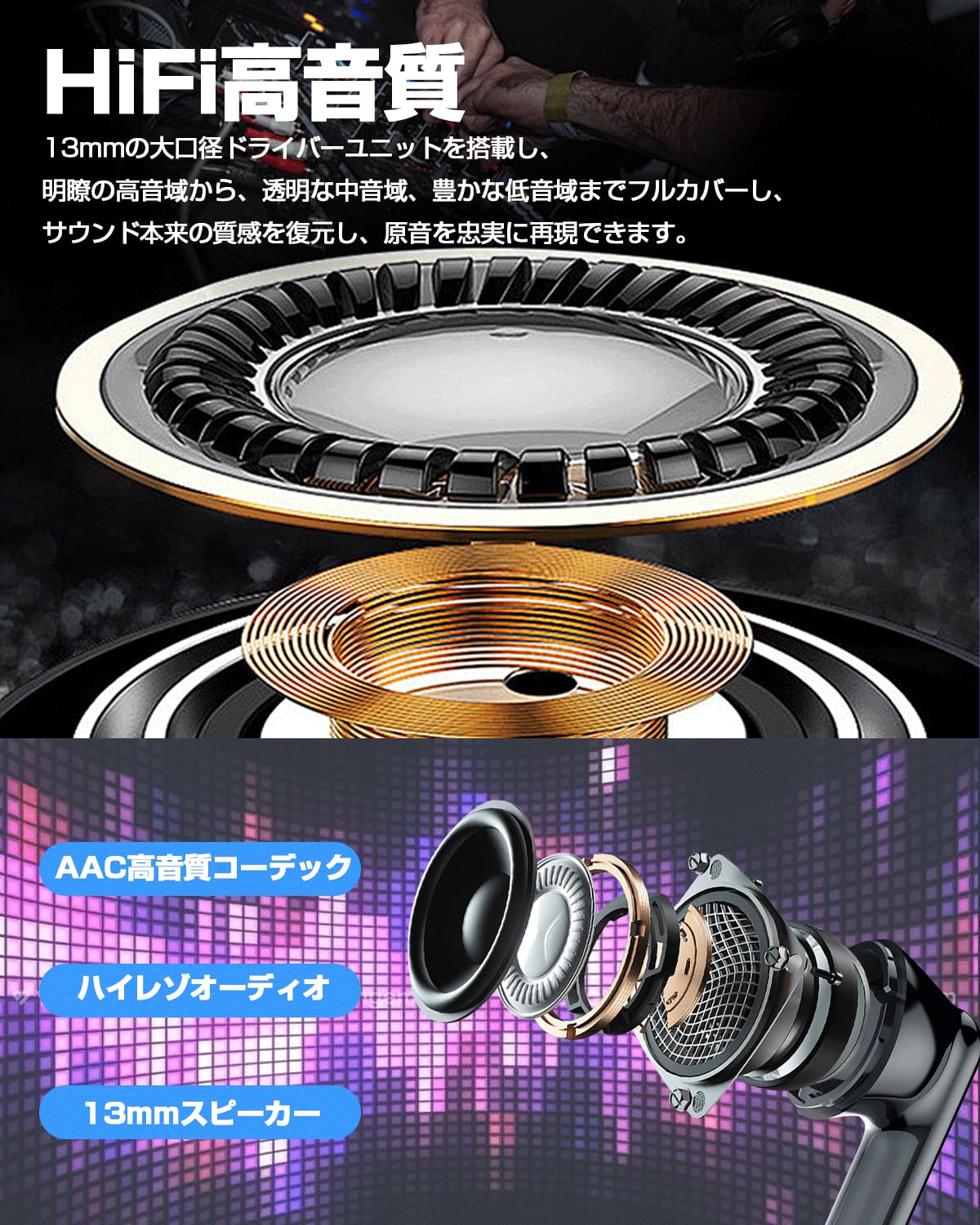 ■ 【高音質ドライバー&ダブルマイクENC通話】 13mmの大口径ドライバーユニットを搭載し、明瞭の高音域から、透明な中音域、豊かな低音域までフルカバーし、サウンド本来の質感を復元し、原音を忠実に再現できます。