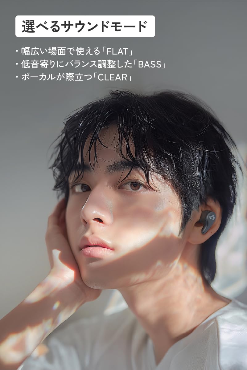 ■ 選べる3つのサウンドモード___好みやシチュエーションに合わせて切り替えが可能な3つのサウンドモード(FLAT/BASS/CLEAR)を搭載。