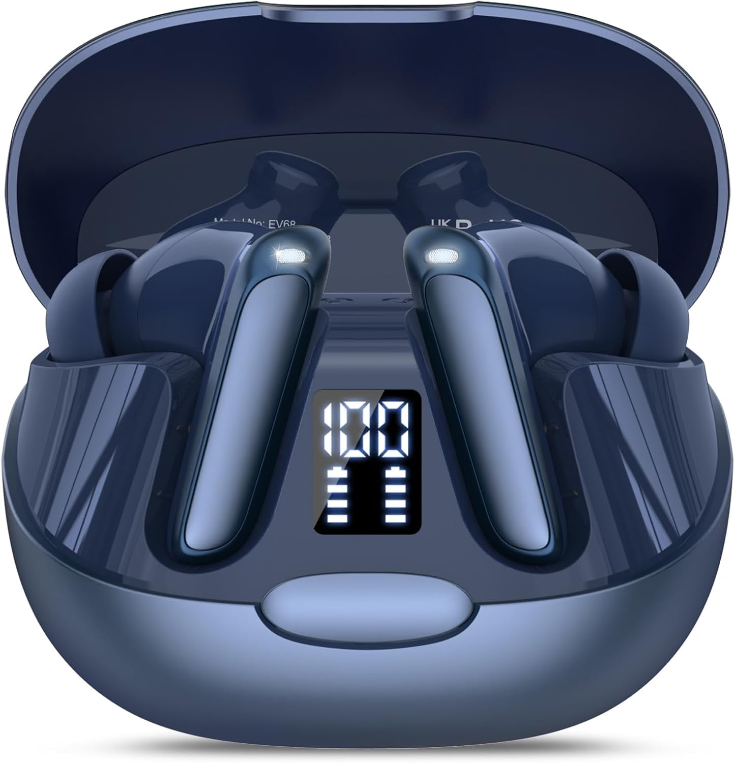 イヤホン bluetooth ワイヤレスイヤホン【2025最新ブルートゥースイヤホン】Bluetooth5.4 AIスマート ENC通話ノイズキャンセリング Hi-Fi音質 AAC対応 LEDディスプレイ 快適装着感 自動ペアリング 最大48時間再生 IPX7防水 接続瞬時 タッチ操作 Type-C急速充電 iOS/Android適用 WEB会議通勤/通学/スポーツ/音楽/ゲーム (ダークブルー)