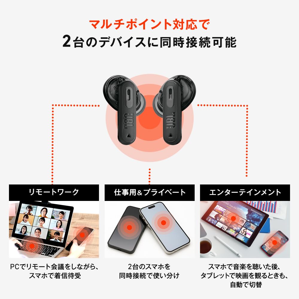 JBL TUNE BEAM 2 ワイヤレスイヤホン ハイブリッドノイズキャンセリング 防水防塵 マルチポイント接続 急速充電 片側使用 アプリ対応 (ゴーストブラック)