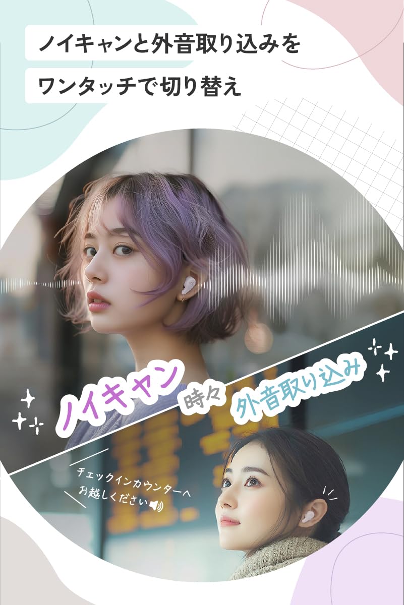 施設内アナウンスを聞き逃したくないときは、ワンタッチで外音取り込み機能をオンに。