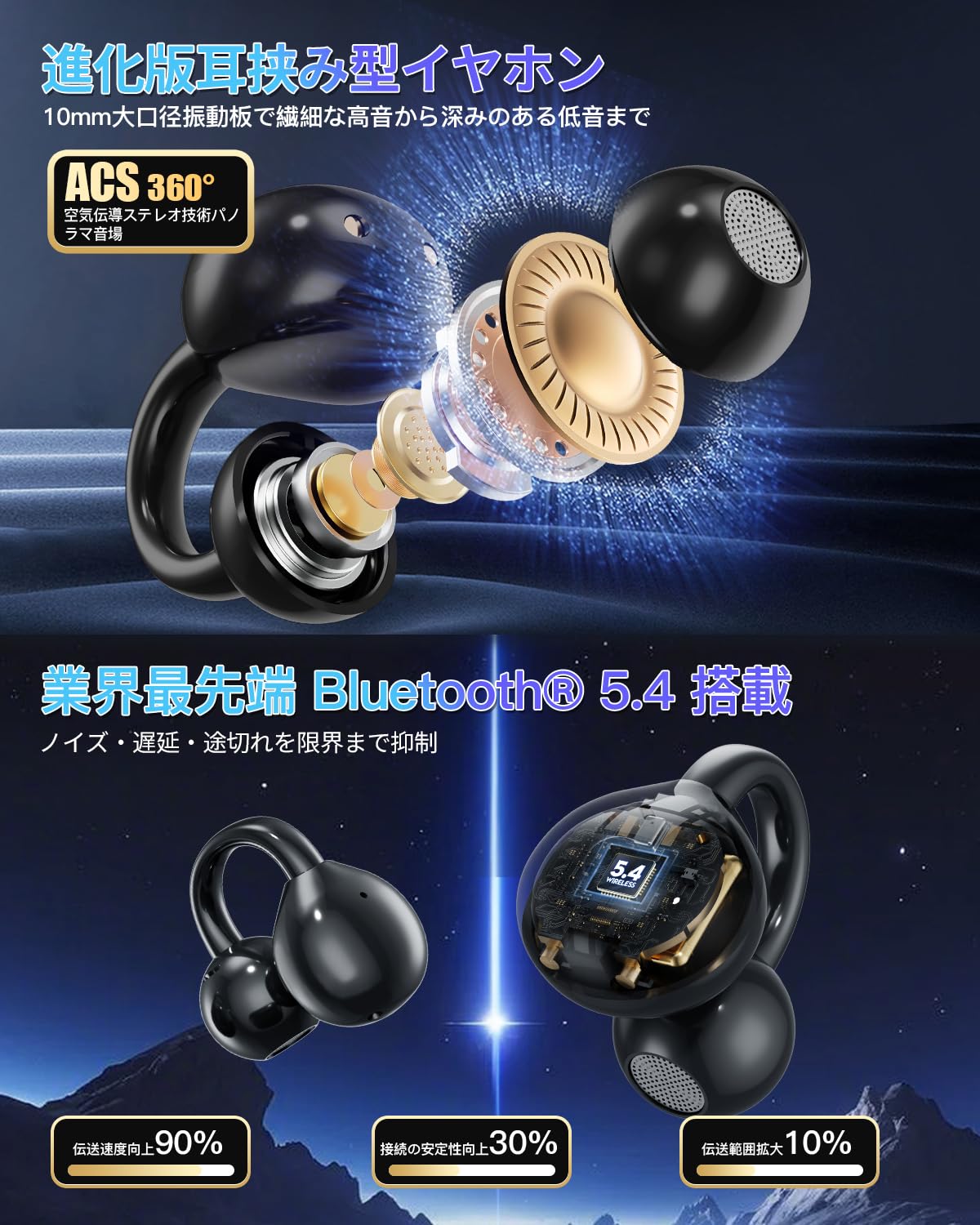 ■ ️【プロ級!ACSサラウンドサウンド+BASS技術!臨場感あふれるサウンド体験】イヤーカフは10mmデュアルマグネット・ダイナミックドライバーを採用。