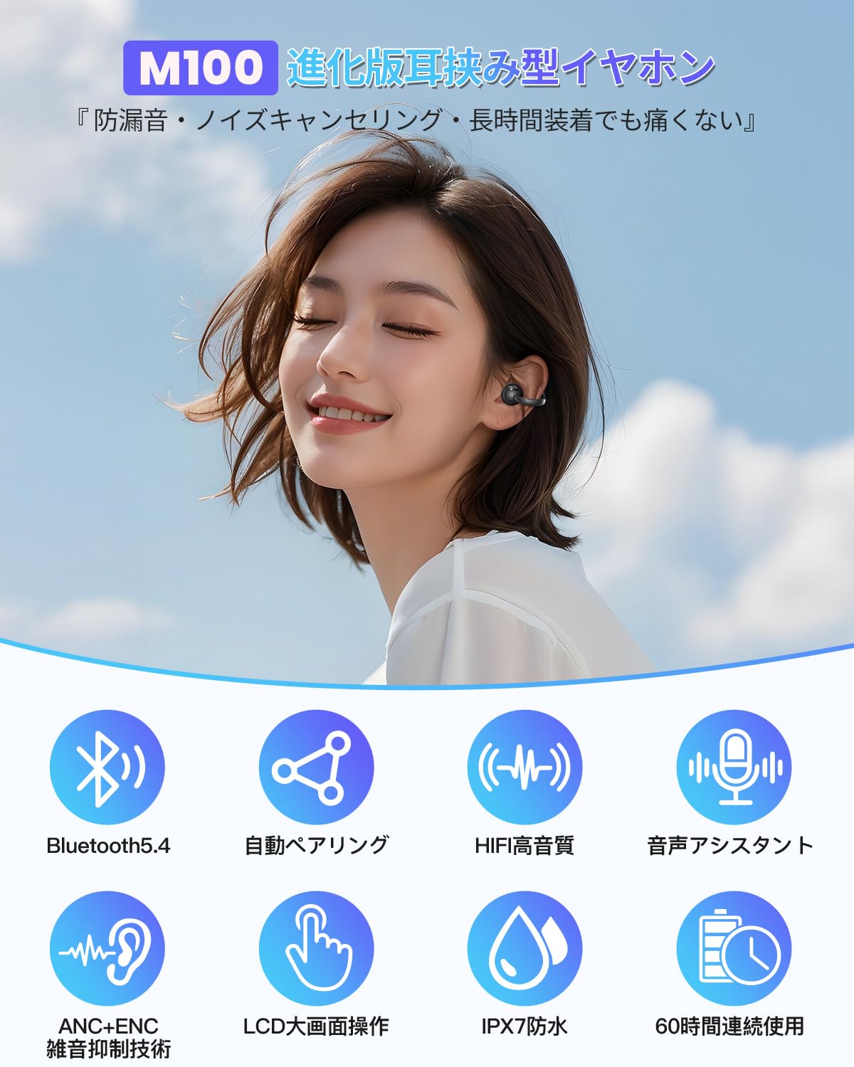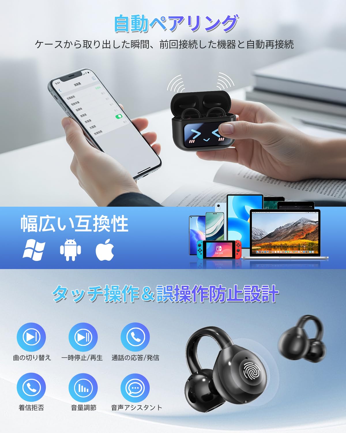 ■ ️【革命的なC型イヤーカフ!新次元の装着感&反応が速いタッチ操作】従来のイヤホンとは一線を画す、人間工学に基づいた耳挟み型デザインを採用、長時間装着でもまったく痛くならない快適さ。
