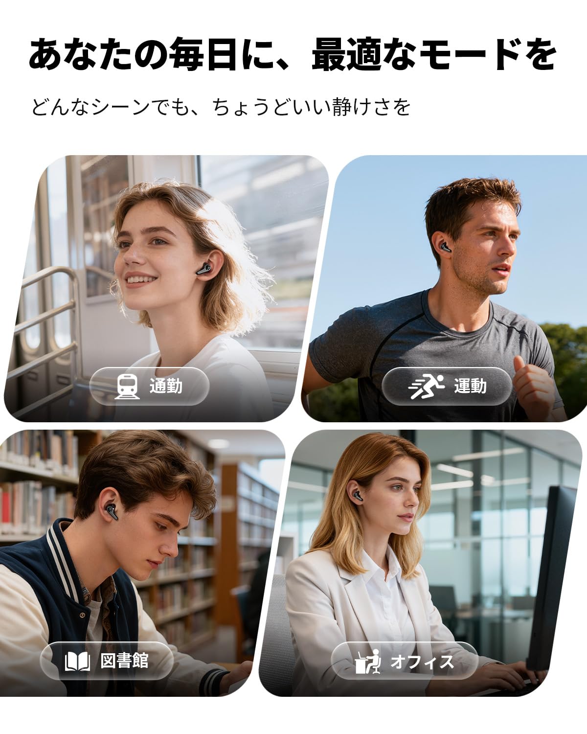 電車・カフェ・オフィスなど、ワンタップで理想の静けさに切り替え。