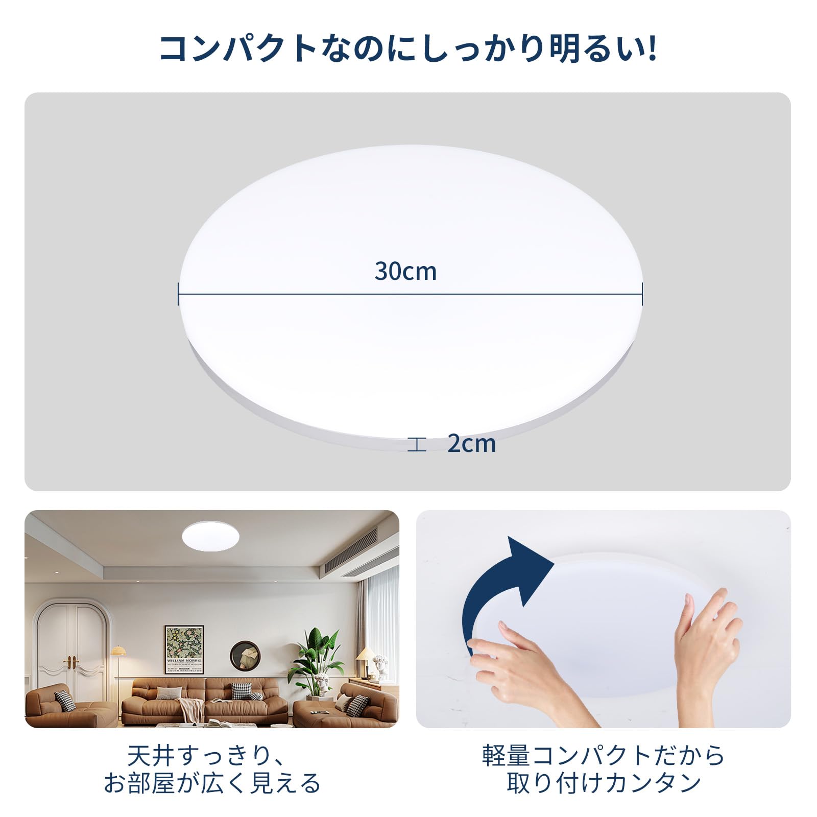 * 【省エネ・高輝度・薄型】本製品はLED素子を採用しており、従来の電球よりも消費電力も少なく、発光効率も高いです(同じワット数の従来電球と比べると電気料金は半分、明るさは2倍)。無段階調光・調色可能、リモコンでライトの明るさと色温度の設定ができます。ワット数38W、明るさ4800lm、直径30cm、厚さ3cm。