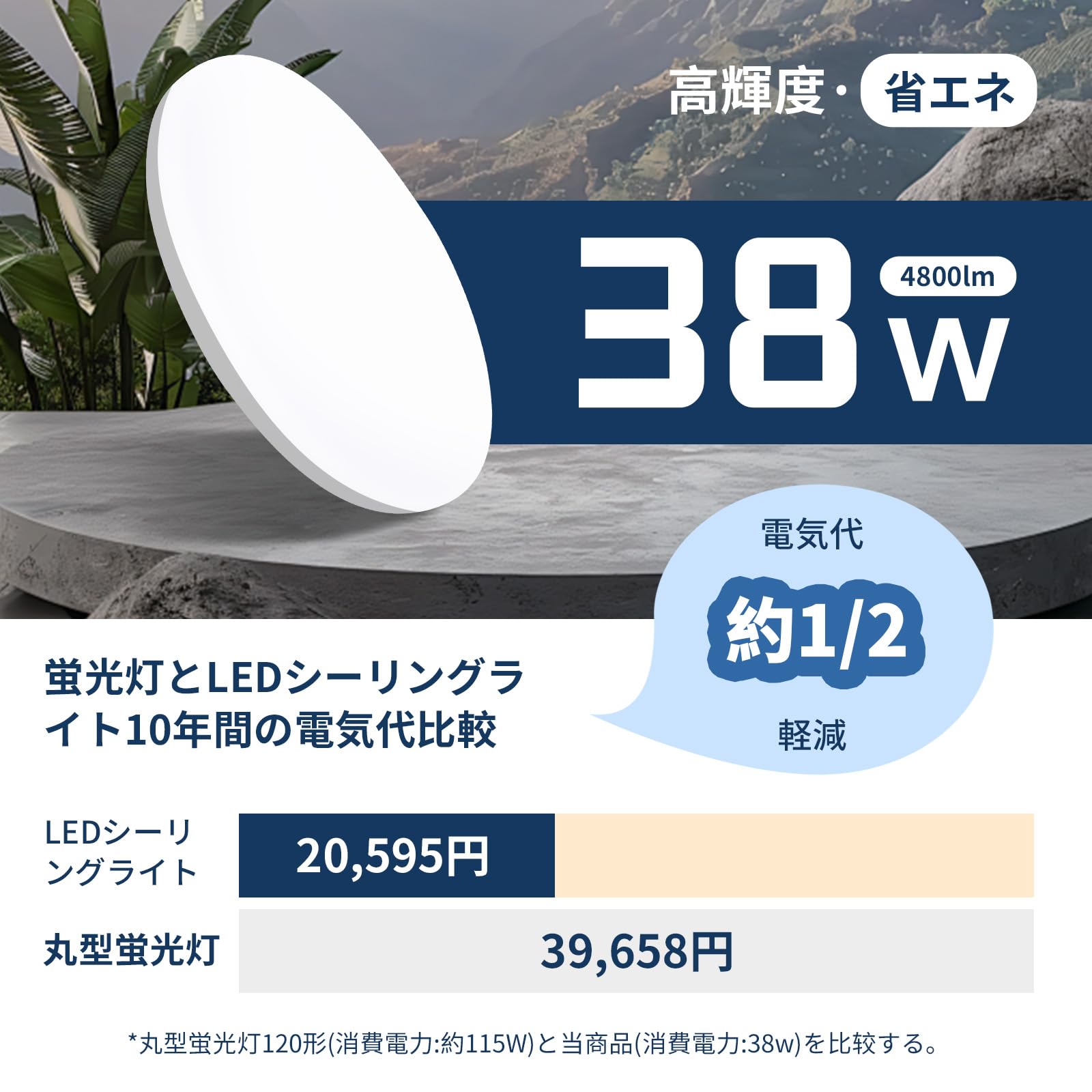【8畳用】NAONE LEDシーリングライト 8畳~10畳38W 4800LM しーりんくシーリングライト 天井照明器具 おしゃれ 蛍光灯 調色/調光タイプ 昼光色 電球色 リモコン付き 調光タイプ LEDライト 常夜灯モード メモリ機能 15分/30分/60分スリープタイマー 玄関 寝室 和室 台所 洗面所