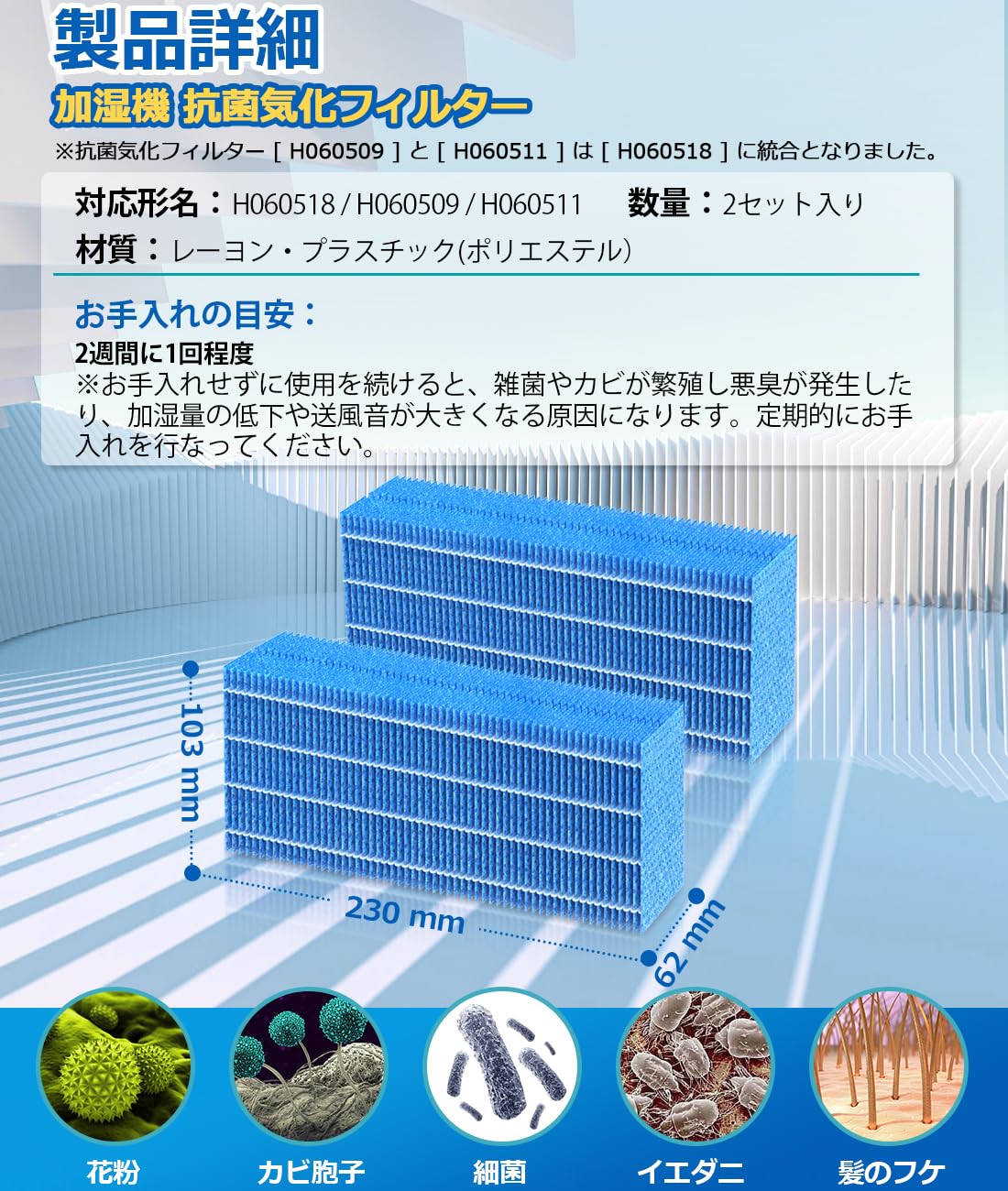 H060518 フィルター H060509 加湿フィルター H060511 加湿器 抗菌気化 ハイブリッド式加湿器 互換品 【2枚入り】