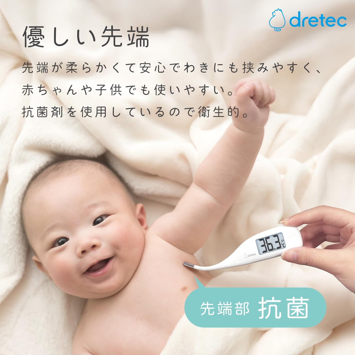 ドリテック(dretec) 体温計 予測式 15秒 早い 赤ちゃん 子供 先が曲がるやわらかタッチ わき用 音が大きい 光る バックライト 抗菌 電子体温計 大画面 デジタル TO-204AWTDI