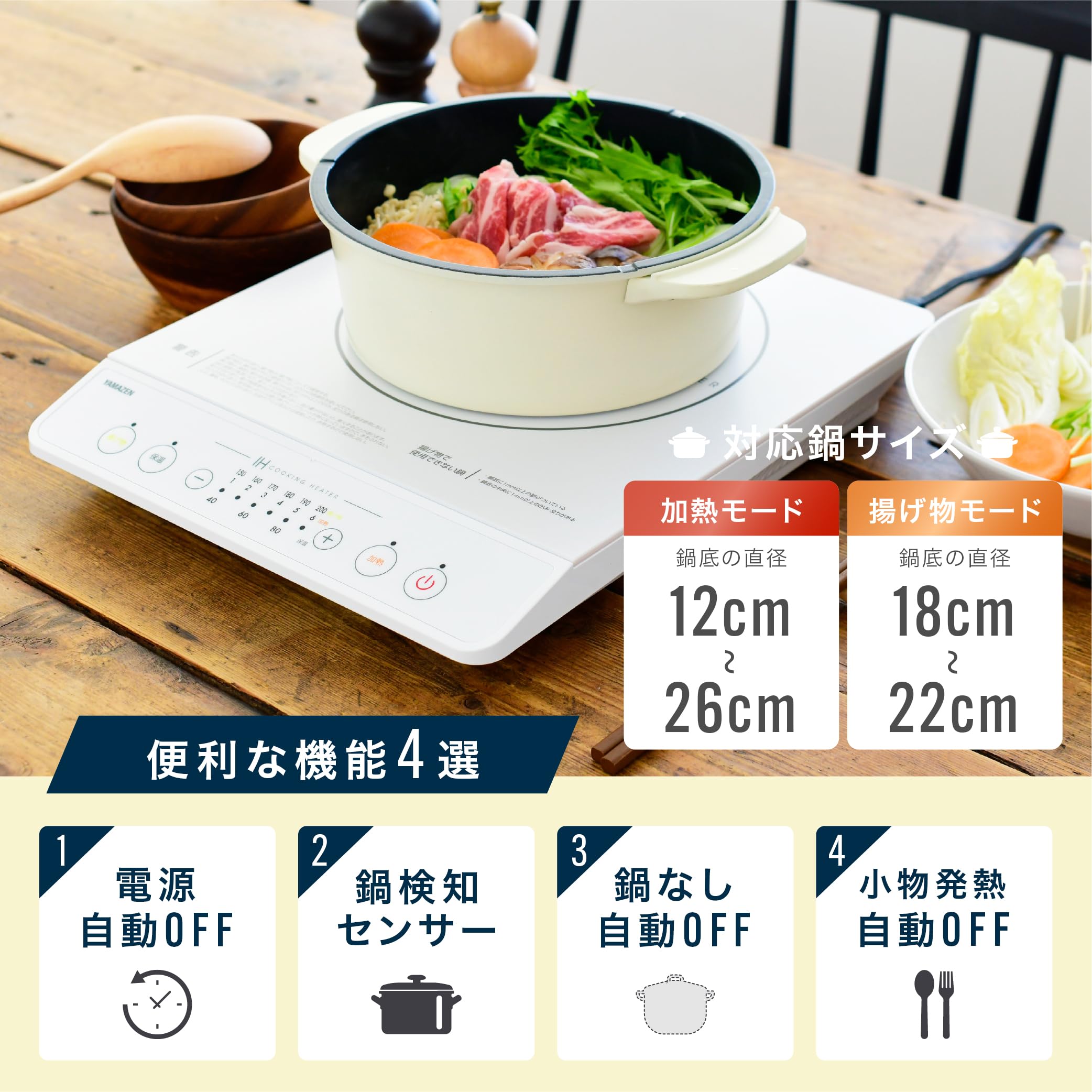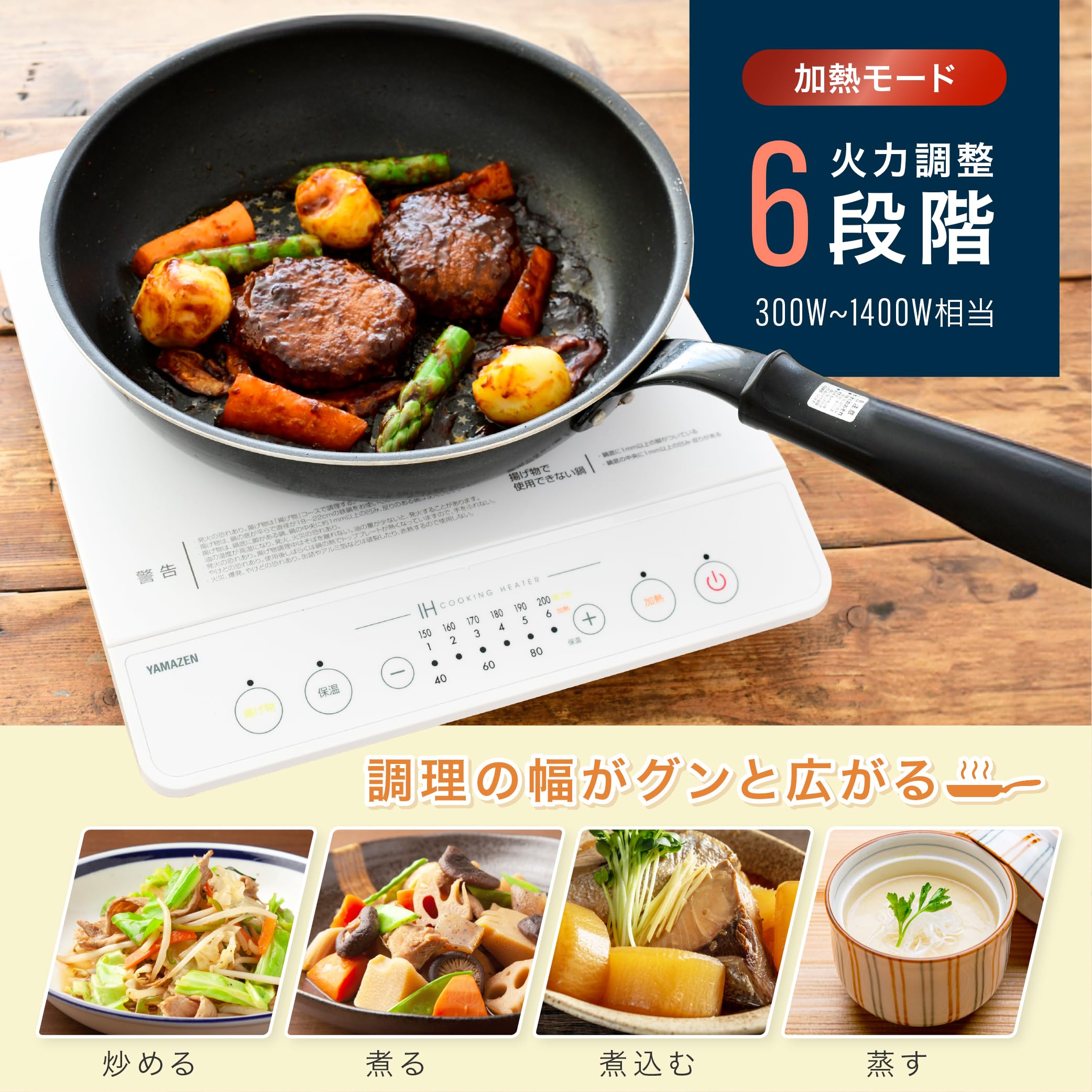 [山善] IHコンロ IHクッキングヒーター 卓上 小型 一人暮らし 二人暮らし 1400W 高火力 火力調整6段階 保温 IH調理器 マグネットプラグ仕様 ホワイト YEN-S140(W)