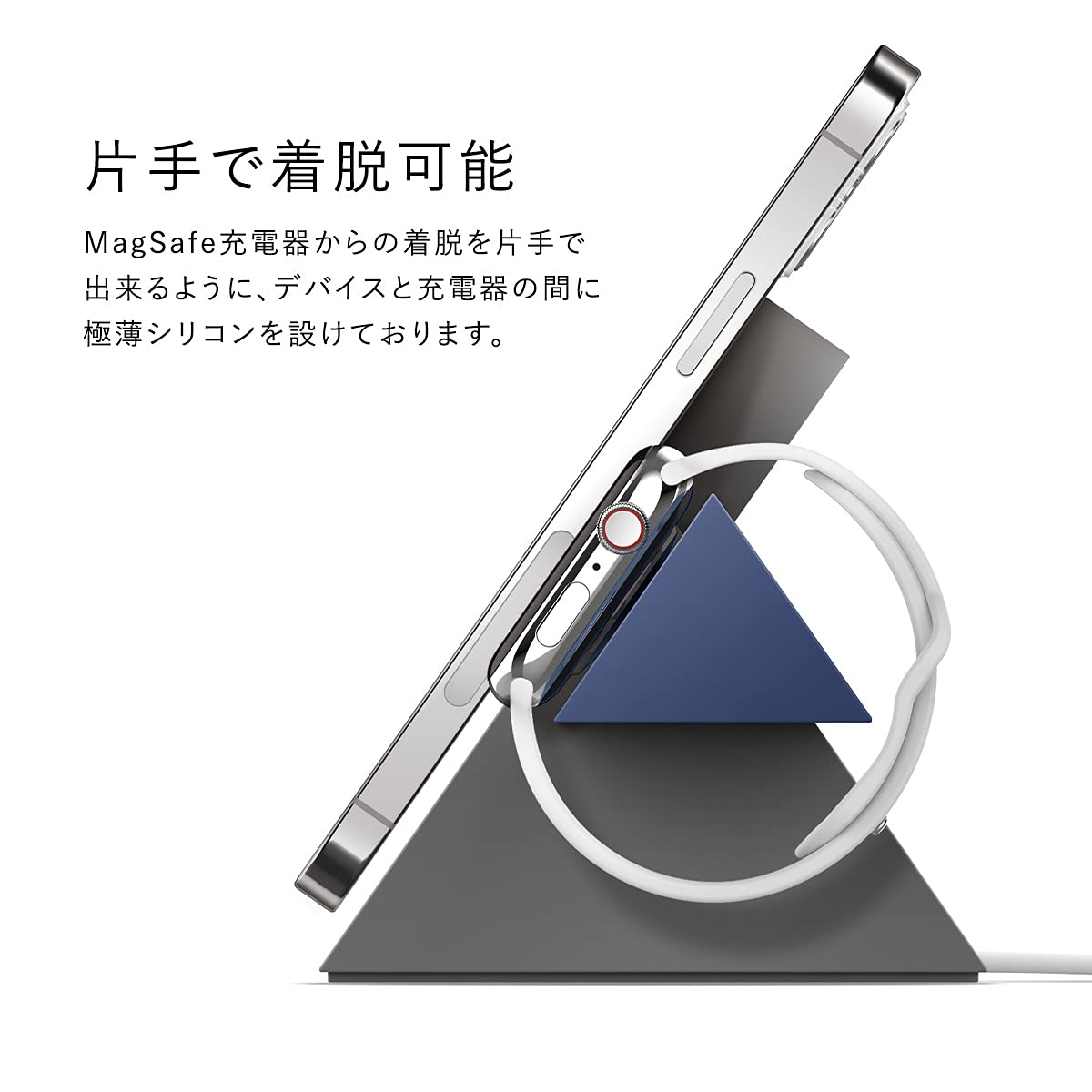 ■ 【製品特徴】… ◆ MagSafe 充電器 : Apple純正品のみ対応 ◆ ナイトスタンドモード : 対応 ◆ 片手での取り外し : 可能 ◆ 裏側ケーブル収納 : あり