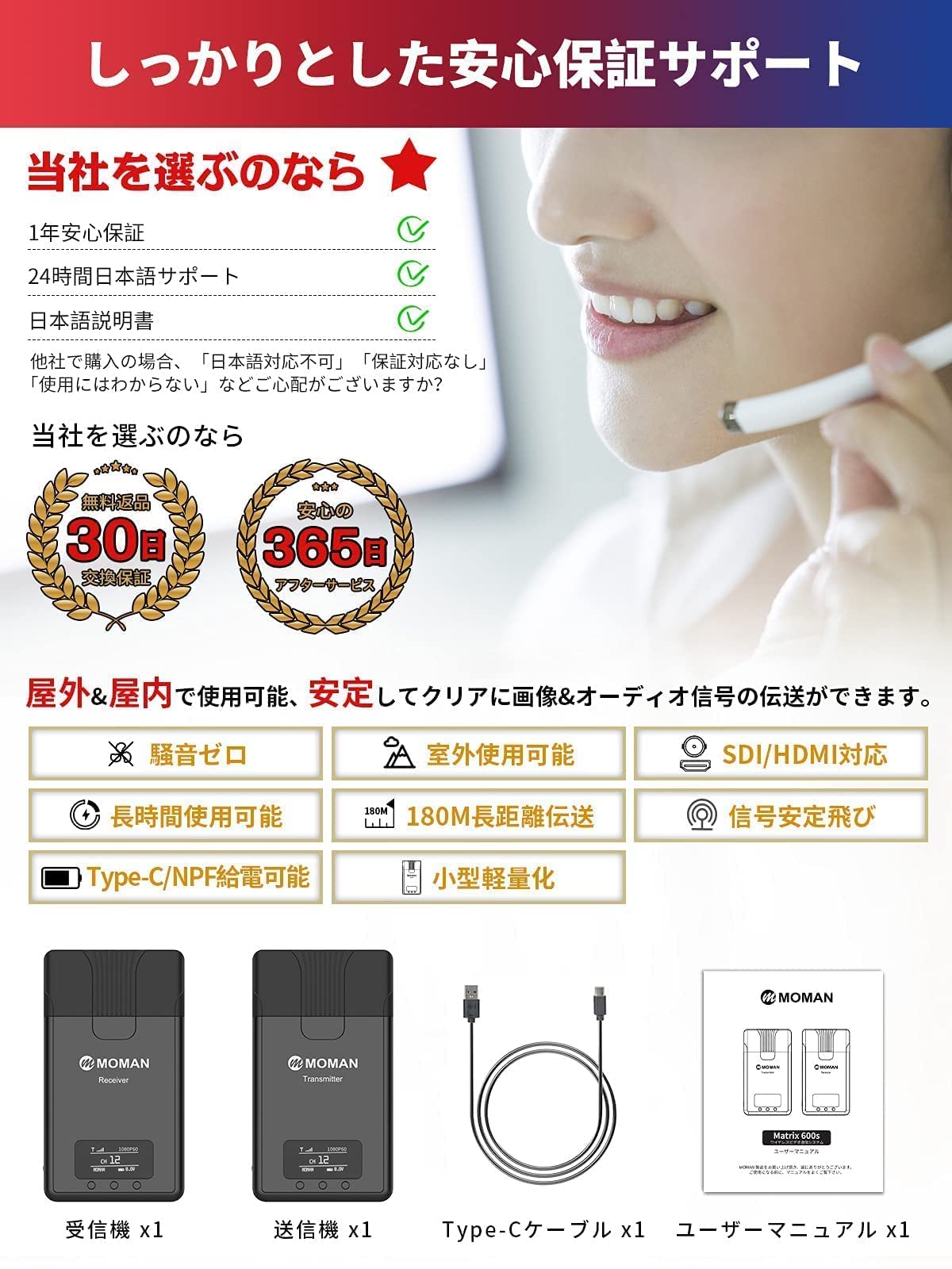 【一年安心保証】日本語サポート&1年間保証を提供致します。