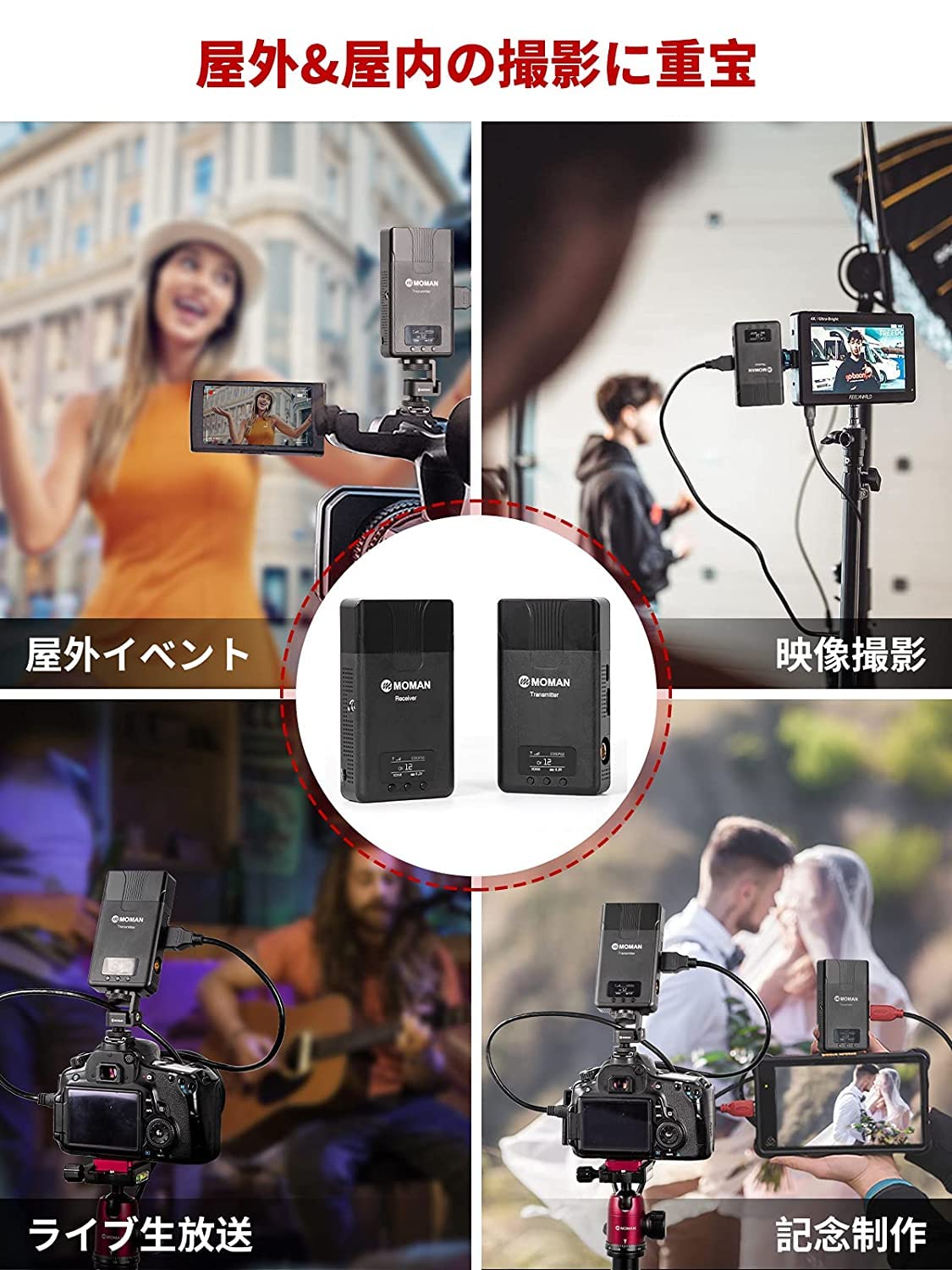 ■ 【革新のアンテナ集積化技術】より安定した信号伝送アルゴリズムのアップグレードに基づいて、Moman Matrix 600s HDMI無線映像伝送システムはアンテナを送信機と受信機に内蔵され、撮影時に邪魔にならず、コンパクトでアンテナ取付が必要なものより、さらに持ち運びやすいです。
