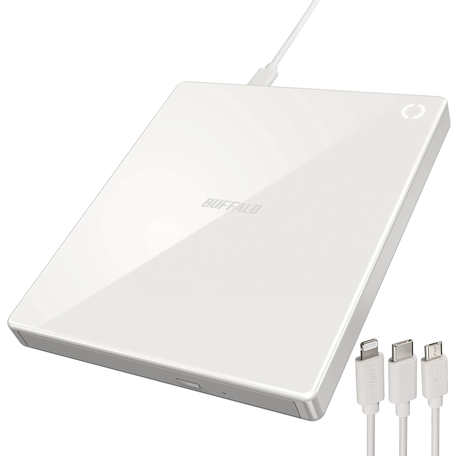 バッファロー ラクレコ+ iPhone スマホ CD 取り込み CDレコーダー 語学 学習 プレーヤー パソコン不要 ケーブルモデル 【 iOS ・ Android/iPad/Fireタブレット 対応 】 ホワイト RR-C1-WH/N