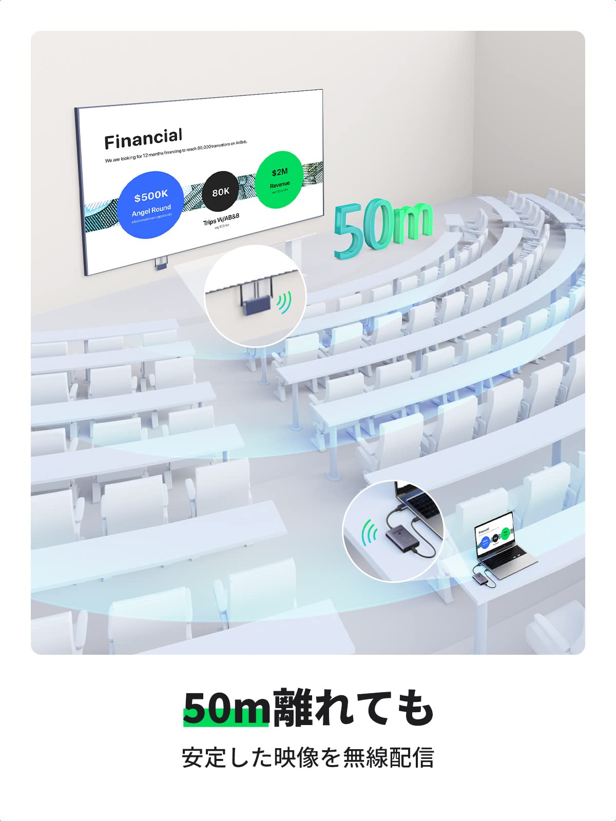 ■ 【最大50mまで通信可能】HDMI信号を無線で最大50m延長できるワイヤレスワイヤレスHDMI送受信機セットです。