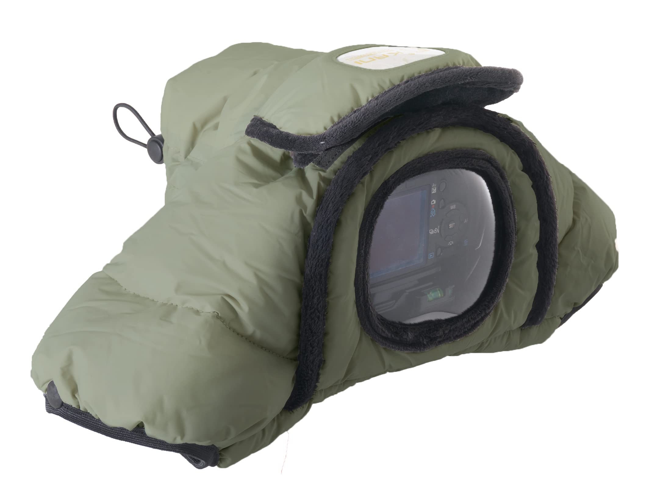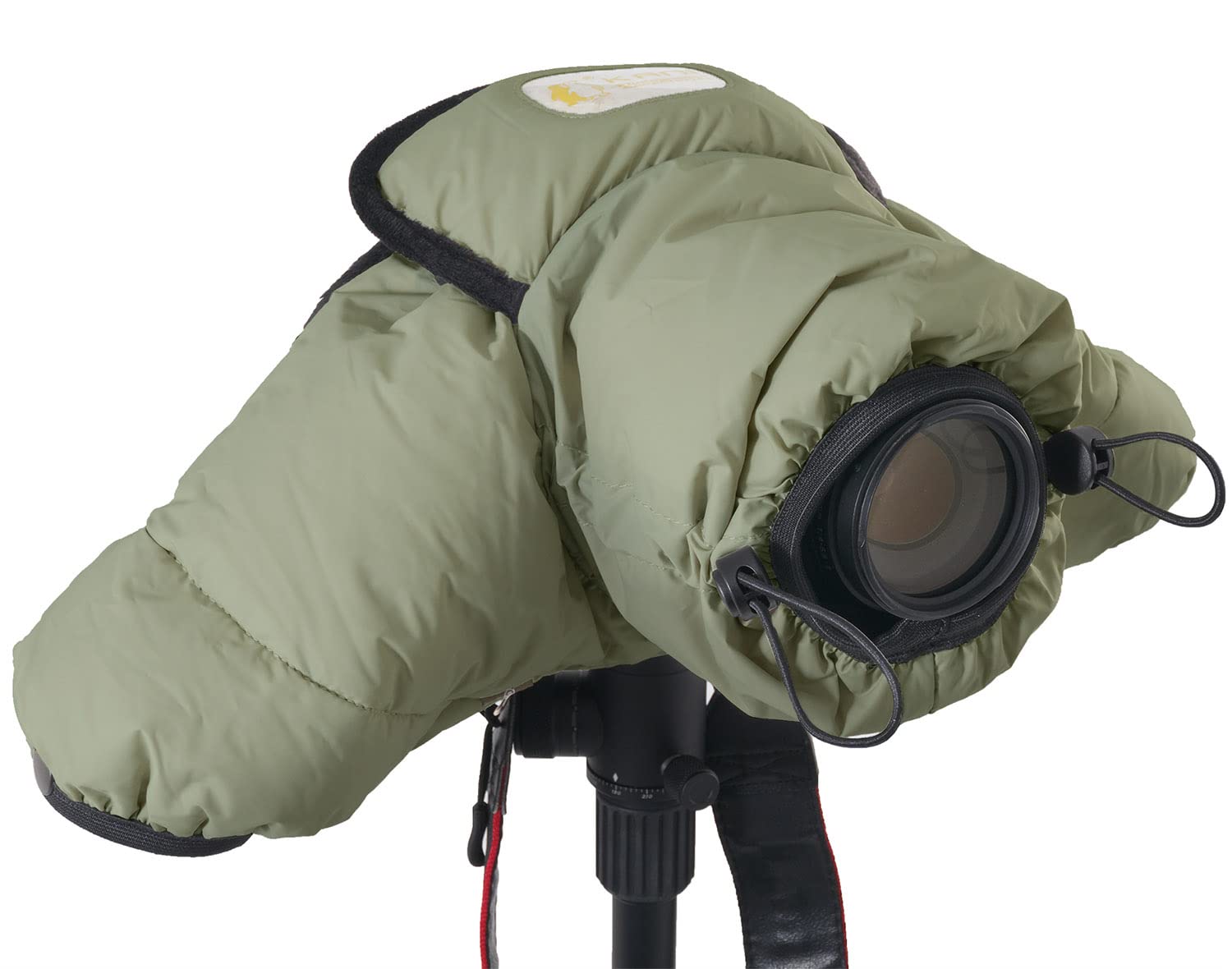 KANI 三脚アクセサリ カメラ防寒カバー AC-004M グリーン 天然フェザー採用 各社中級機カメラ対応 一眼レフ ミラーレス 背面透明窓 三脚取付可能 手持ち撮影対応 ポリエステル製 810496