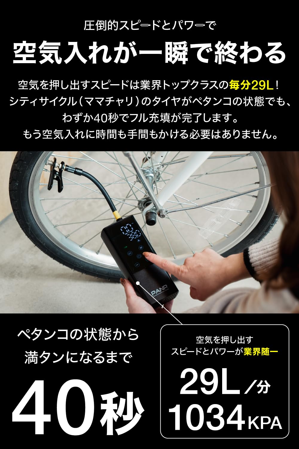 PANP RIDE 空気入れ 自転車 車 バイク ボール 電動 【安さより品質で選ぶ人へ】 米式 英式 仏式 すべてのタイヤ対応 日本 メーカー保証2年