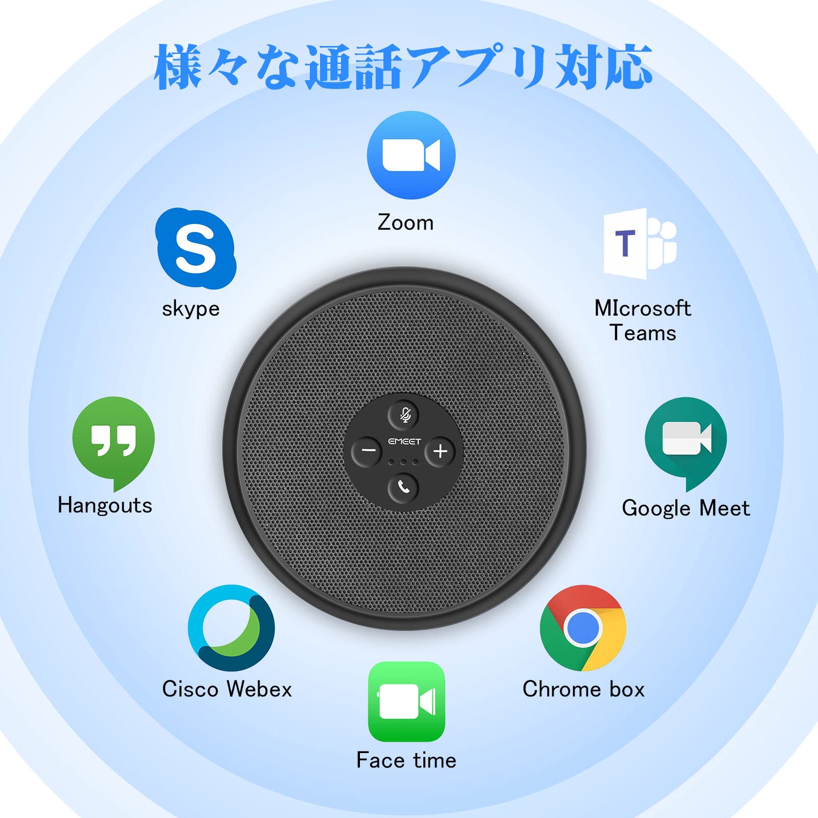 EMEET M1A会議用マイクスピーカーは、Zoom、Skype、Microsoft Teamsおよびほとんどの会議アプリケーションと互換性があります。