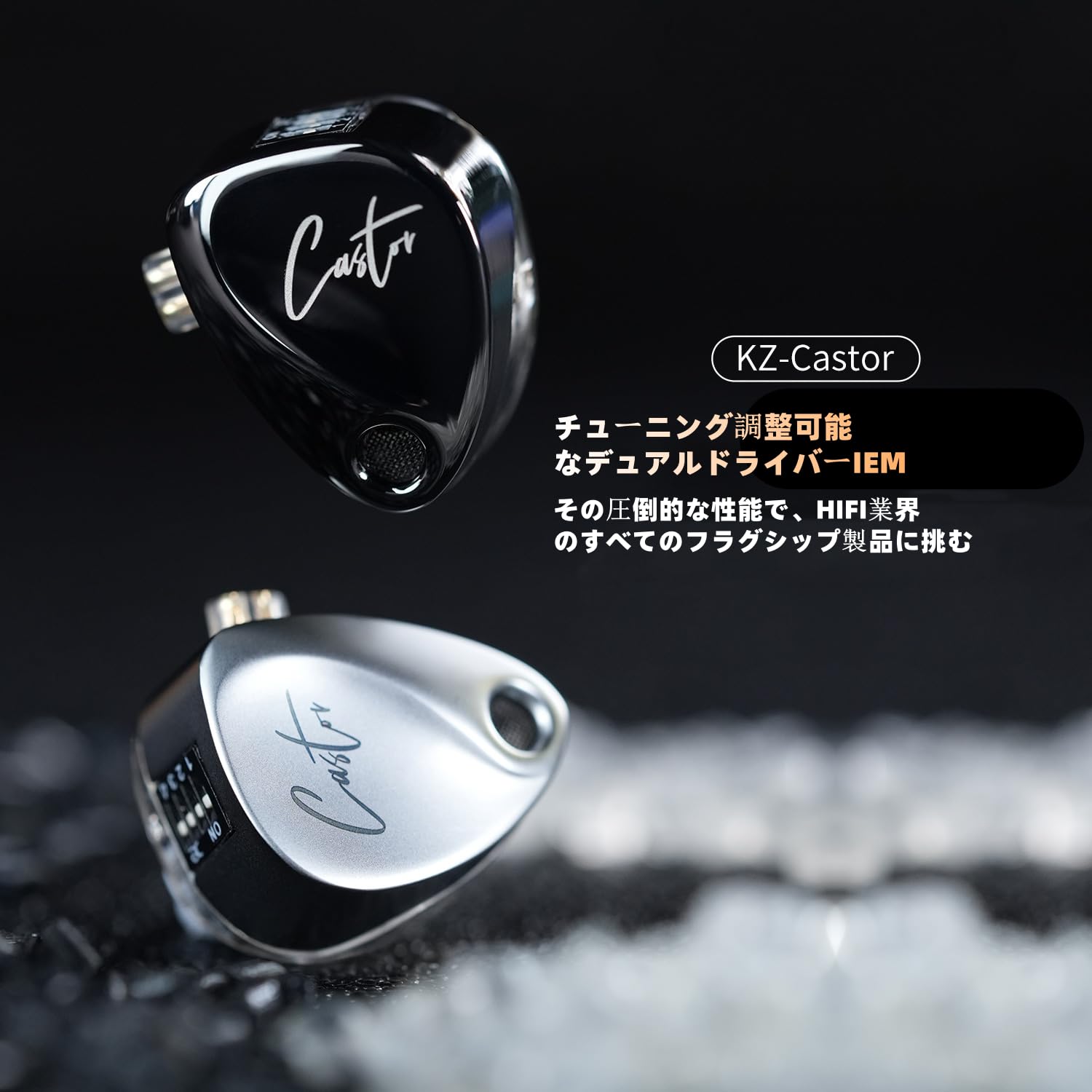 KZ Castor カナル型 イヤホン 有線 KZ インイヤーモニターイヤホン デュアルダイナミックドライバー ミュージシャンシンガー用 2dd チューニングスイッチ 低反発イヤーチップ (シルバーマイク無し)