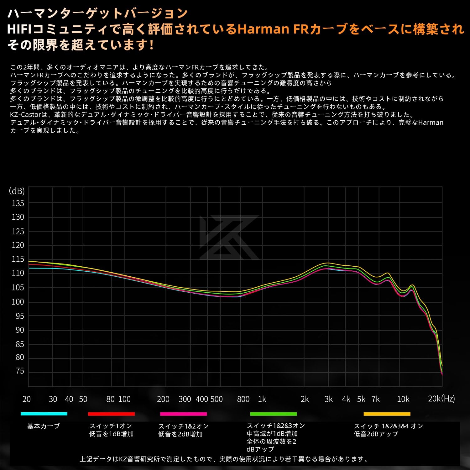 * 【Harman Target Version】kz castor カナル型イヤホンは、Hifiコミュニティ内で高く評価されているハーマンFRカーブに基づいて構築されたハーマンFRカーブをチューニングターゲットとしてイヤホンをモニターします。パラメーターパフォーマンスや音の知覚の点で、ほとんどのIEMよりも優れています。