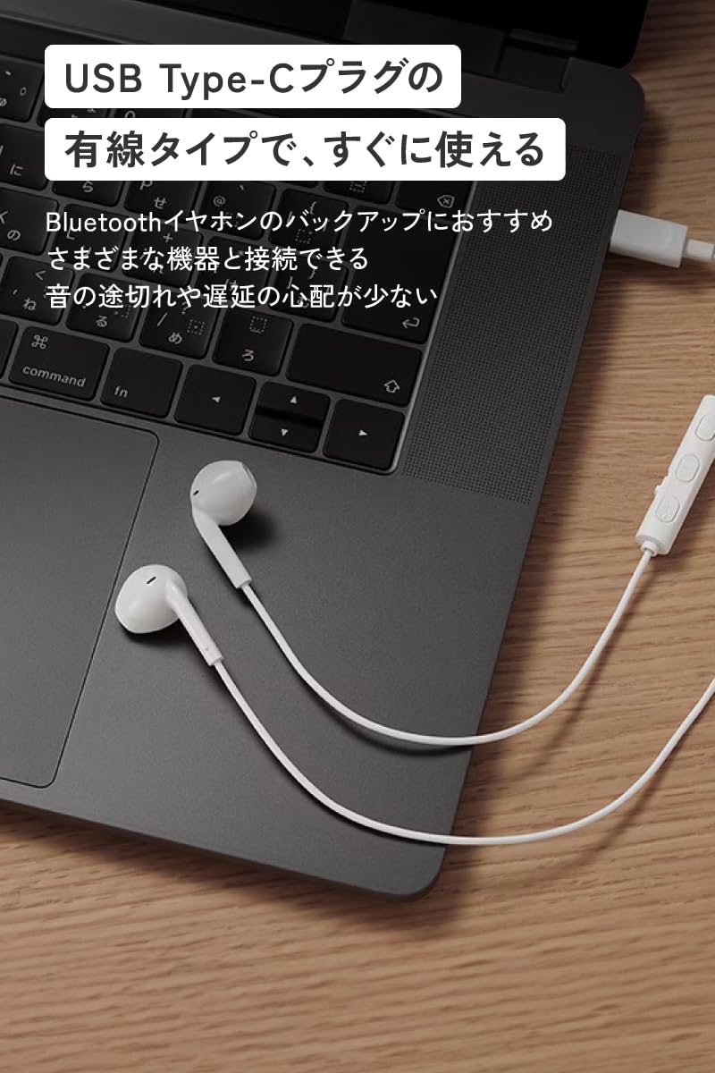 * リモコンには、マイクのON/OFFを手元で、簡単に切り替え※2が可能な専用スライドスイッチをはじめ、音量が操作できる+/-ボタンや、再生/一時停止、曲送り/曲戻しなどの基本操作ができるマルチファンクションボタンを搭載。各ボタンは押し間違いのないように、触感で識別しやすいデザインを採用しました。また、内蔵の通話用マイクには高品質な大型マイクを採用し、有線接続による非圧縮の音声信号の特性と合わせることにより、クリアな通話を実現します。※2:イヤホン本体のマイクをON/OFFする機能であり、PCやスマートフォン、各アプリケーションのマイクON/OFFとは連動しません。