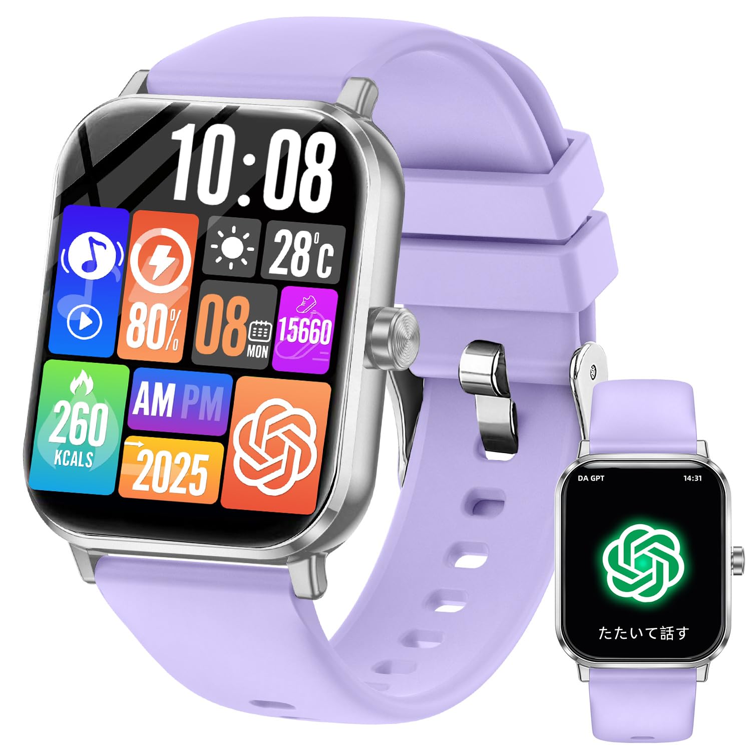 スマートウォッチ Smart Watch【chatgpt対応2026最新】Bluetooth5.3 通話機能 AI 日本語対応通話機能付き1.85インチHD大画面 活動量計 腕時計音楽再生 運動/ゲーム/テレワーク 多機能スマートウォッチ100種類運動モードip68防水防汗 メッセージ通知 天気予報 多種類文字盤iphoneとAndroid対応 (09purple)