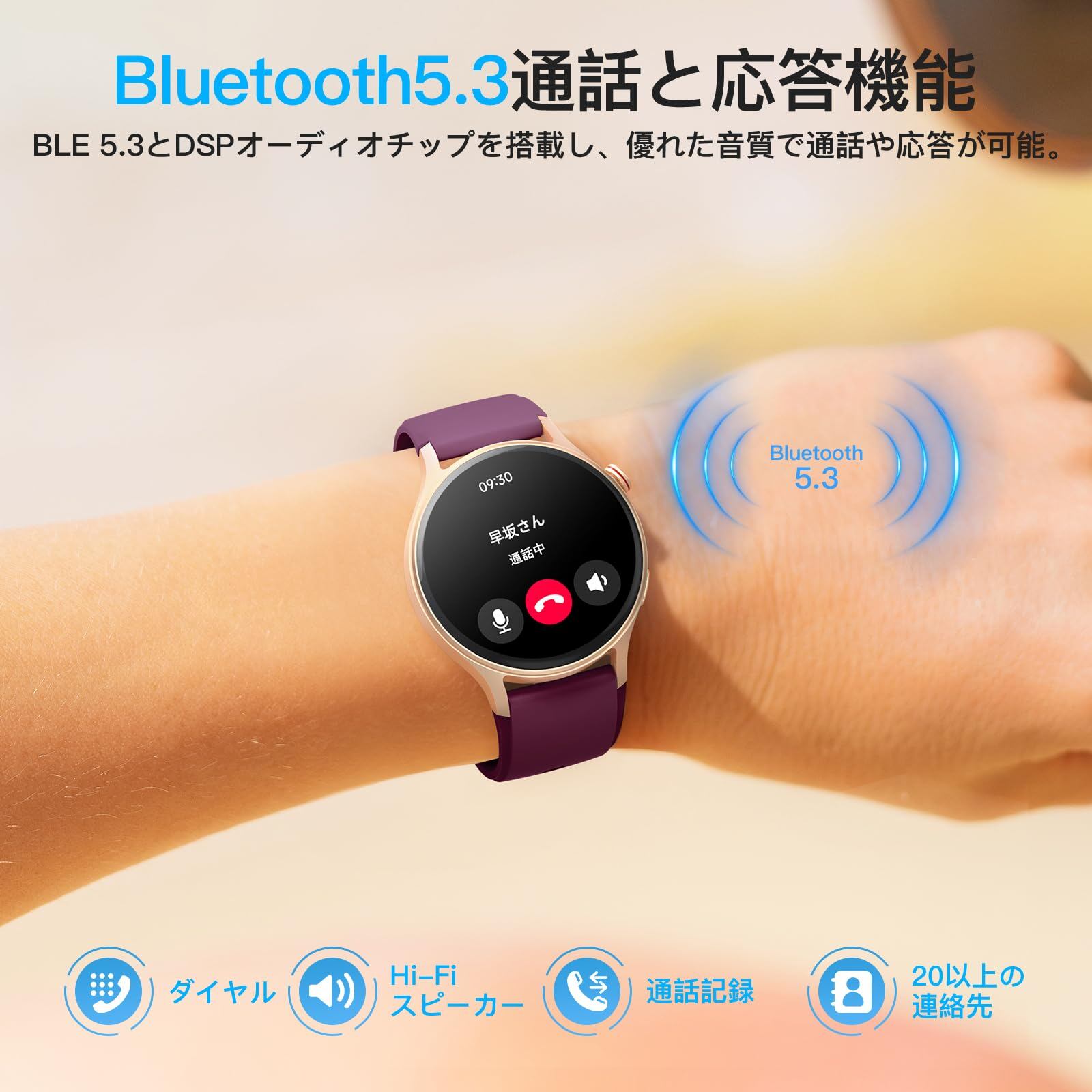 * 【通話機能付き&DSPオーディオチップ搭載】 スマートウォッチをタップするだけで通話可能であり、キーパッド付で電話をかけることができます、電話帳の作成、着信履歴の記録、更に、この便利性にDSPオーディオチップを搭載、安定性に高性能を加えます‥「DSPオーディオチップって?」--DSPを搭載したら、複雑なアナログ回路だと、回路内でどうしても発生しがちなノイズや音質劣化とは全く無縁で、低ノイズで劣化の少ないエフェクト音が得られる。そこで、より安定、より速い、より高音質な通話体験を提供いたします。