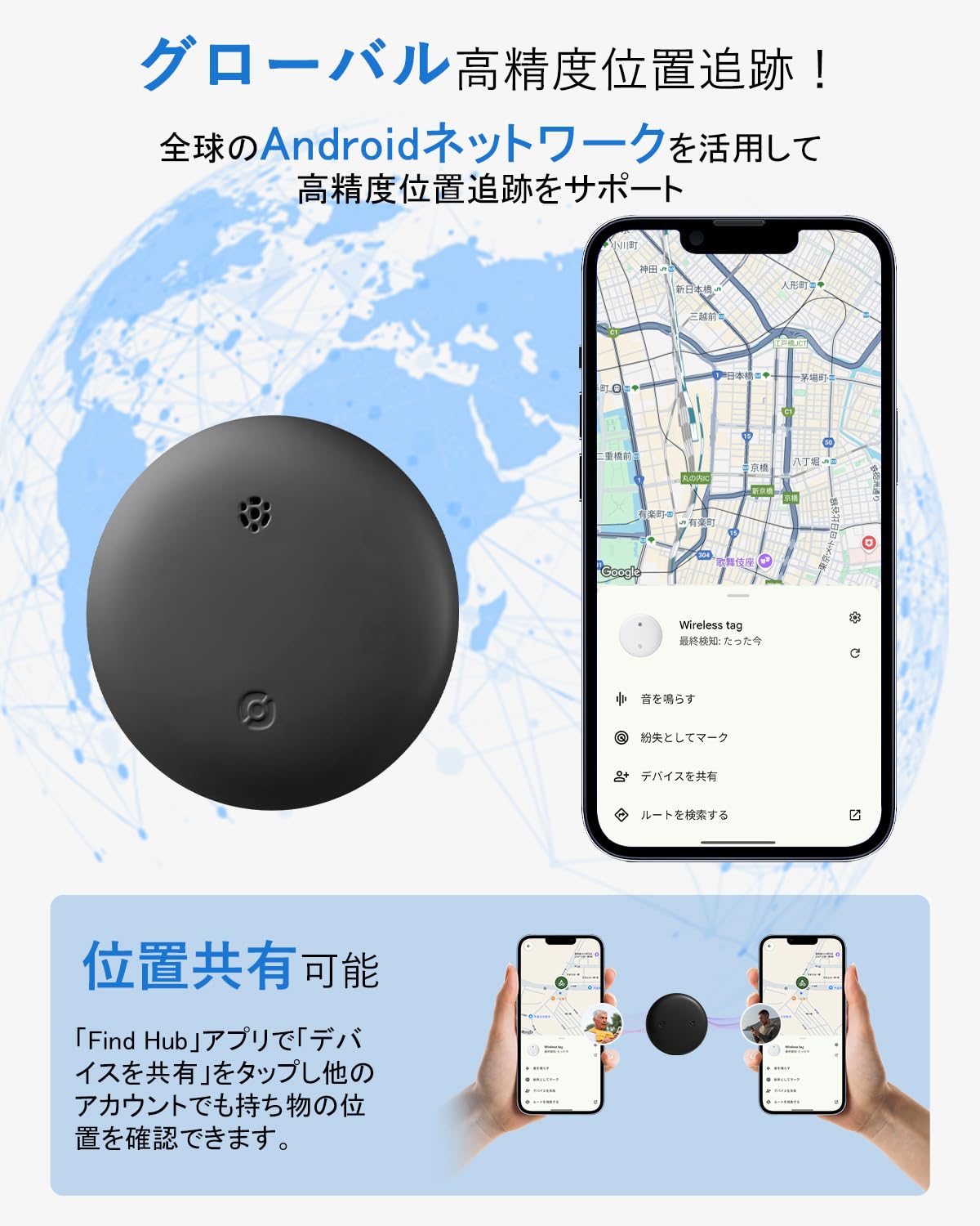 【2025最新Google公式認証】エアタグ Android airtag スマートタグ 紛失防止タグ アンドロイド gpsタグ スマートトラッカー 財布 超薄 超軽量 小型GPS発信機 追跡タグ (Google「検索ハブ」対応 )Android専用 全球GPS測位 超強信号 超長持ち 月額なし 子供/高齢者/ペット見守り 鍵/車両追跡 キーホルダー付きソフトシリコンカバー 日本語説明書