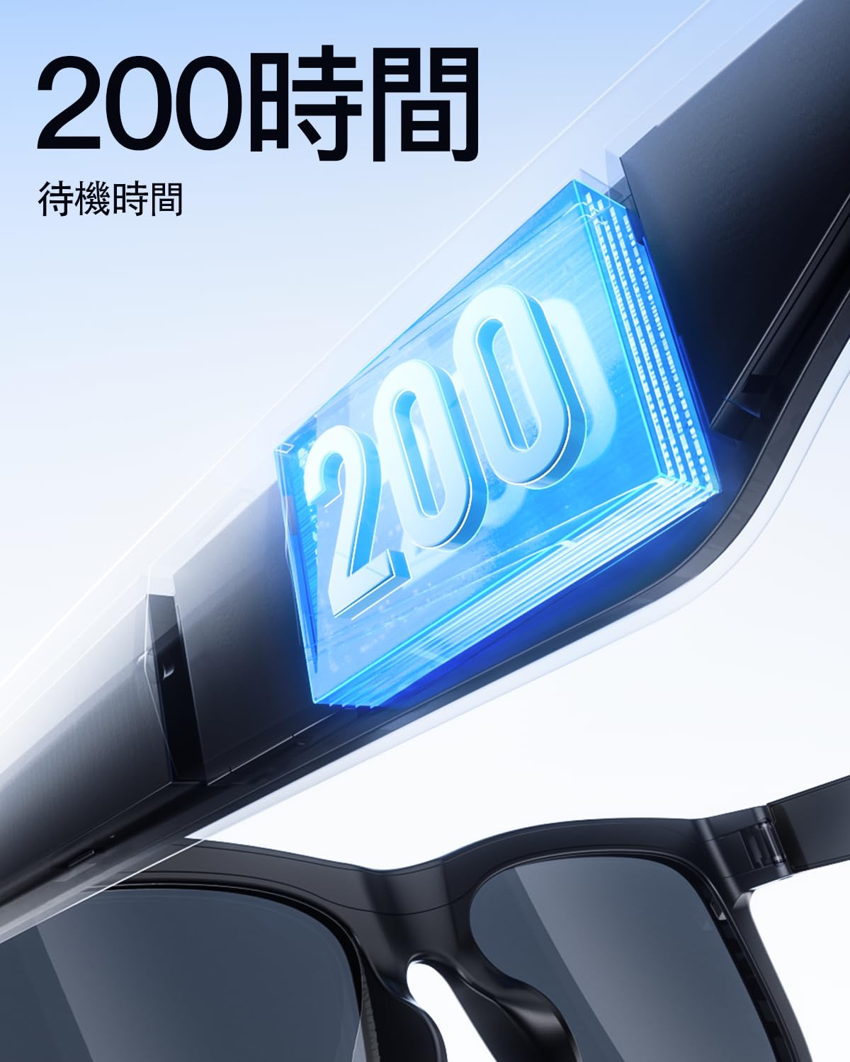 * 【高品質バッテリー、200時間待機】XOオーディオグラスは高品質バッテリーを採用し、満充電にはわずか2時間、連続再生8時間を実現。耐久性と安全性に優れ、待機時間は200時間のため、頻繁な充電は不要です。
