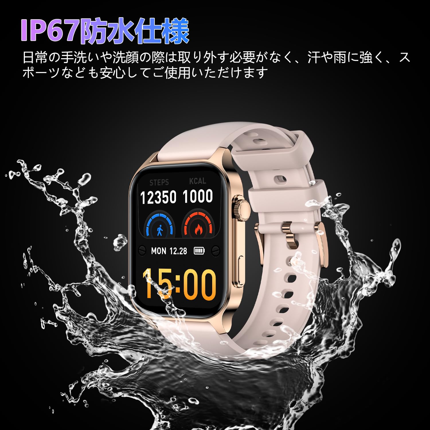 スマートウォッチ【2025年業界最新傑作】iPhone対応 アンドロイド対応 最新Bluetooth5.4通話機能 音楽再生 1.96インチ大画面 活動量計 腕時計 運動モード スポーツウォッチ IP67防水 SMS/Twitter/Line通知 機能 iPhone/アンドロイド対応 メンズ レディース プレゼントに最適 (ピンク)