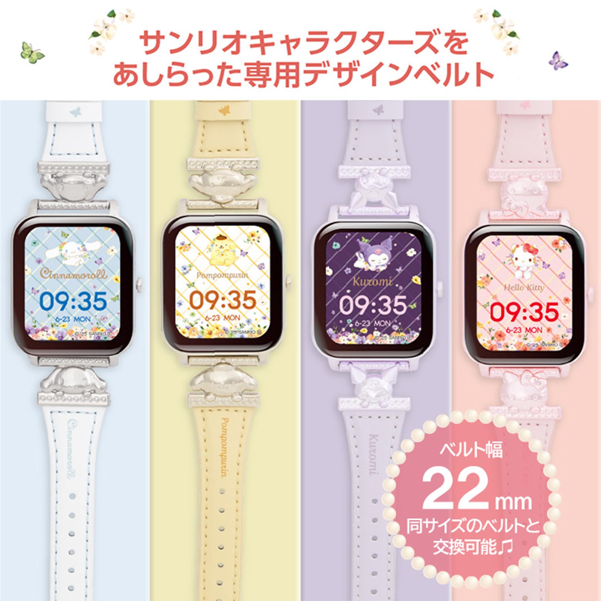サンリオスマートウォッチ ポムポムプリン デザインベルト オリジナルボイス サンリオ アプリ通知 音楽再生 防水 IP68 リモートシャッター 1 GH-SMWL-PN