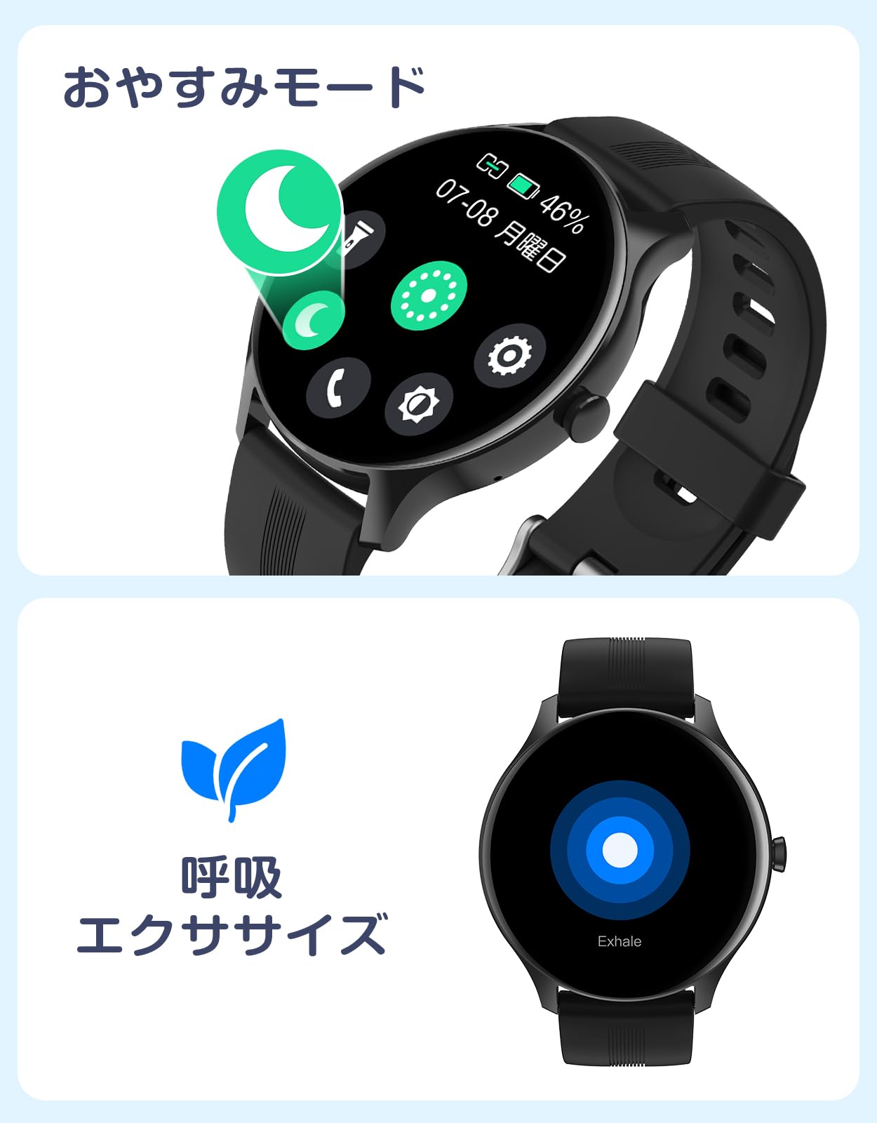 HUAKUA スマートウォッチ iPhone アンドロイド対応 通話音声調整可 一発消音 SOS通話機能付き Smart Watch 1.39インチ大画面 丸型 腕時計 歩数計 着信通知天気予報 IP68防水 長持ちバッテリー 長座注意 スマート探す 日本語説明書 TELEC認証済み