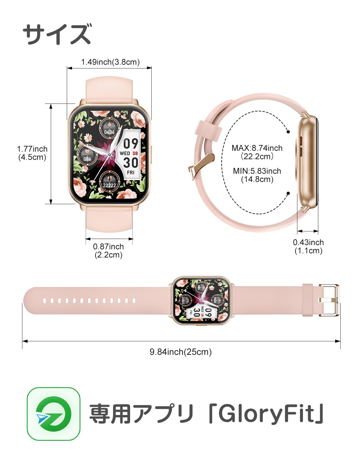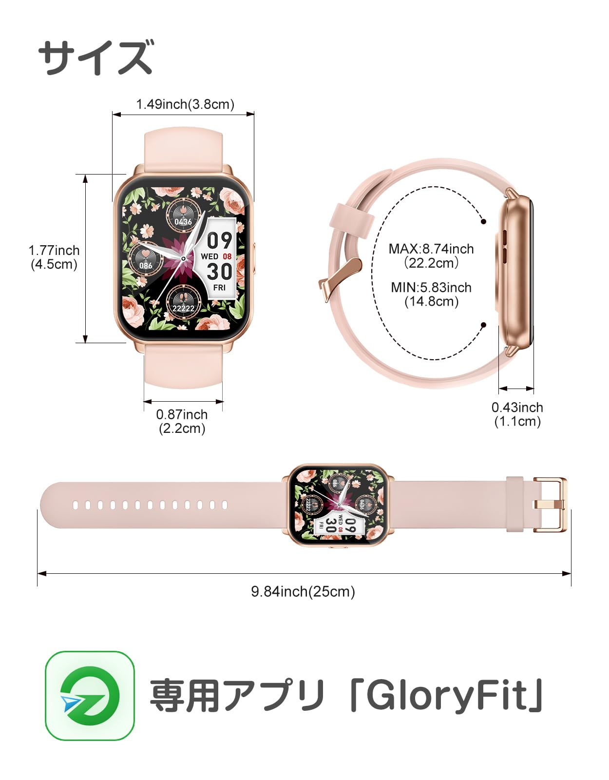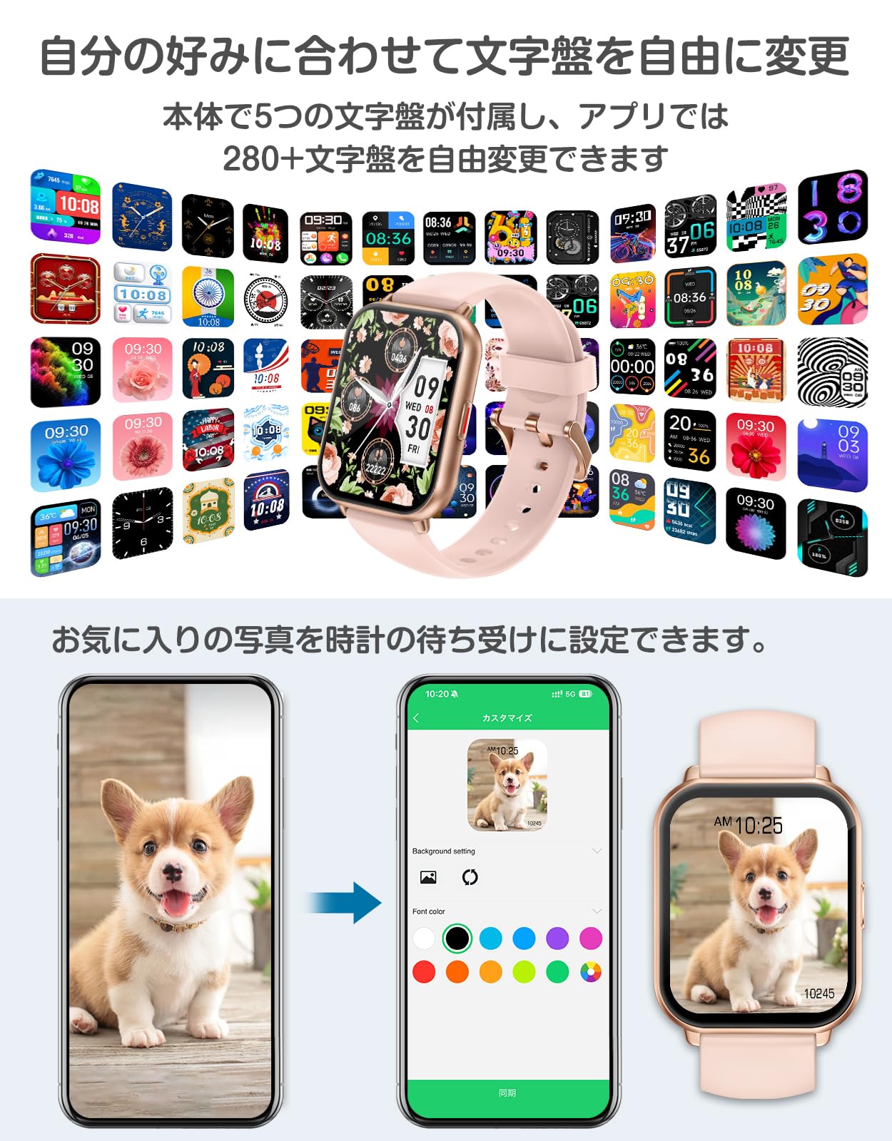 * 【カスタマイズ文字盤・豊富な機能を搭載】 280種類以上の文字盤デザイン——クラシック、シンプル、クール、かわいいものが揃っています。気分や服装に合わせて時計の文字盤を変えることができ、1日に新鮮さと活力を与えてくれます。このほかオリジナルダイヤルを指定でき、ペットや家族など好きな画像をダイヤルに設定できます。毎日を幸せにします。ストップウォッチ、タイマー、懐中電灯、音楽コントロール、目覚まし時計、座りがちリマインダー、女性の月経周期記録、腕上げ点灯、スマホを探す、明るさ調整など毎日のニーズに応える機能が充実しています。