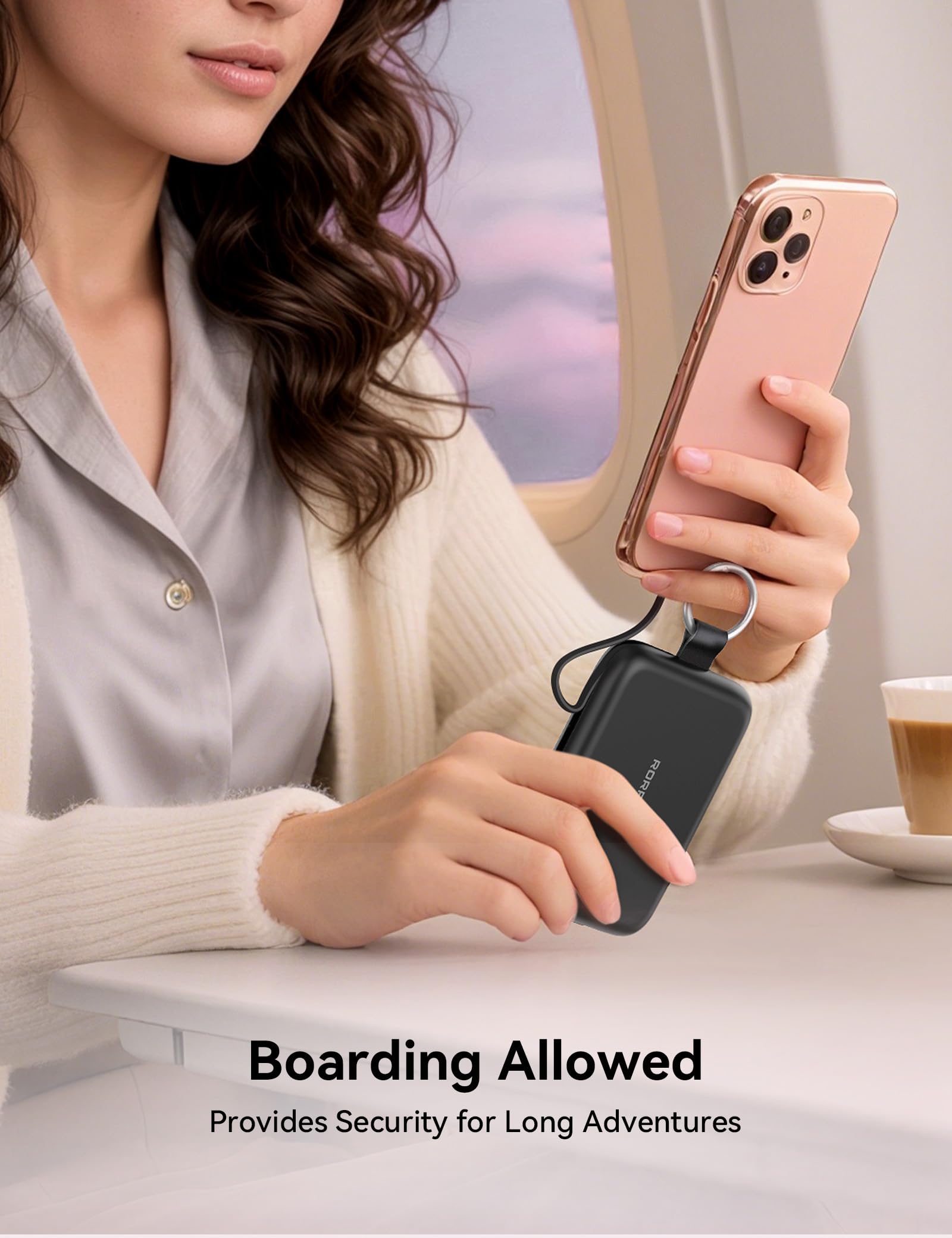 * キーホルダー付き、携帯便利RORRY 小型モバイルバッテリー 大容量 10000mAh 新登場!歩きながら充電する必要がある方には、間違いなくおすすめのアイテムです。サイズは手に収まるほどコンパクトで、丸みを帯びた曲線とマットな質感の組み合わせが、可愛さ満点です。さらに、本体上部にはスタイリッシュなカラビナが付いているため、バッグに掛けるだけでアクセサリーとして輝き、カフェ巡りやデートの時に取り出す瞬間も、自然に可愛らしさをアピールできます。iPhone充電しながら指にかけて持ち歩くのもOK!手の負担もありません。充電するたびに、小さな幸せを感じられ、毎日のお出かけをもっと華やかにしていただけます。6 色の魅力的なカラーで、あなたのスタイルにマッチさせよう!