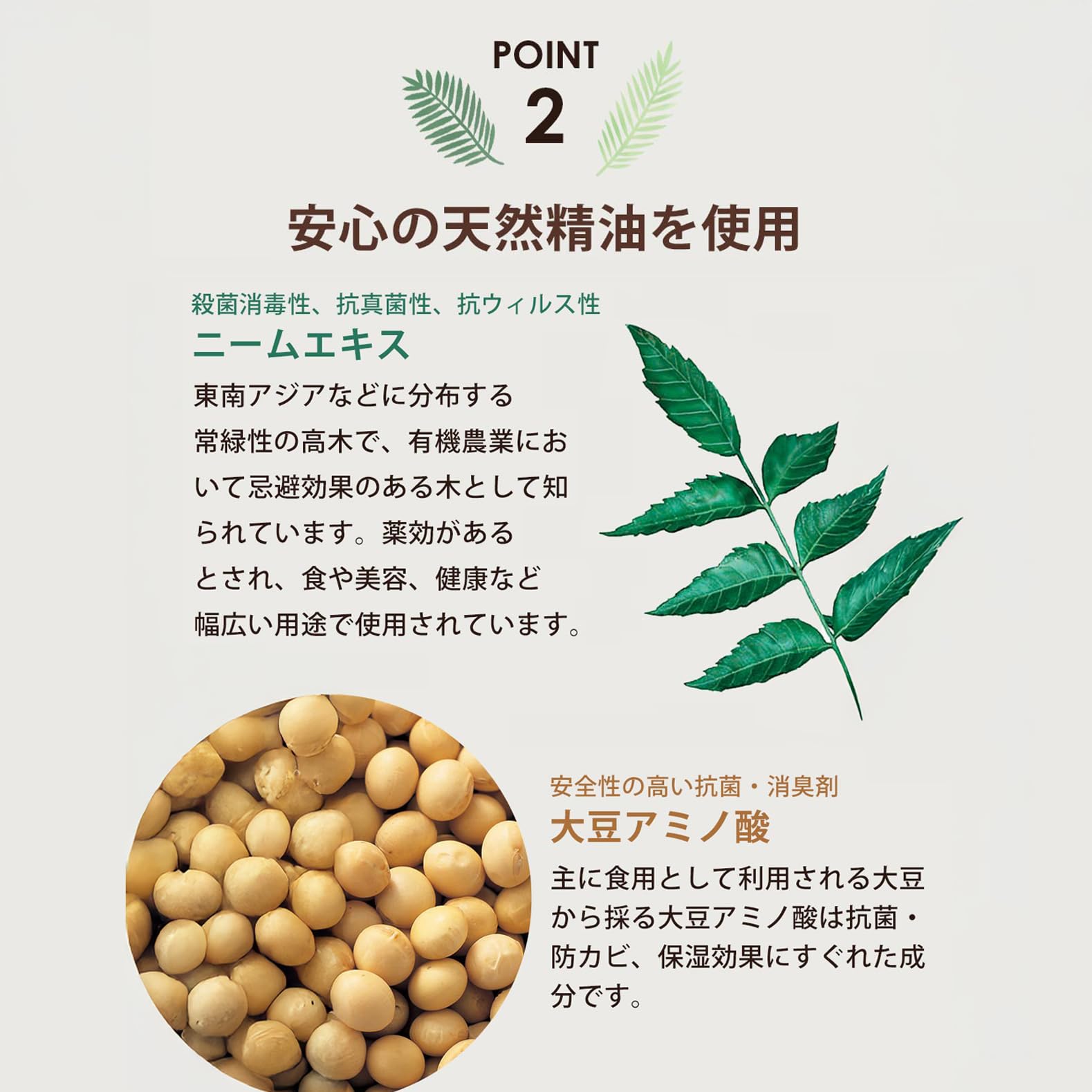 * 天然由来成分配合(ニームエキス・大豆アミノ酸・穀物エキス)でお子さまがいるご家庭でも安心