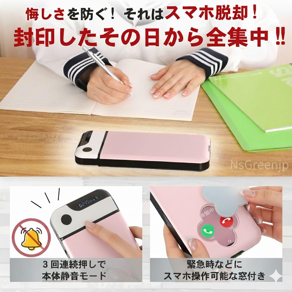 NSGreenjp 2025年版 スマホ依存対策 × 受験・試験対策!タイムロックボックス 勉強に集中 スマホタイムロッキング USB充電式 静音 軽量 透明設計 【志望校合格サポート】 (ピンク)