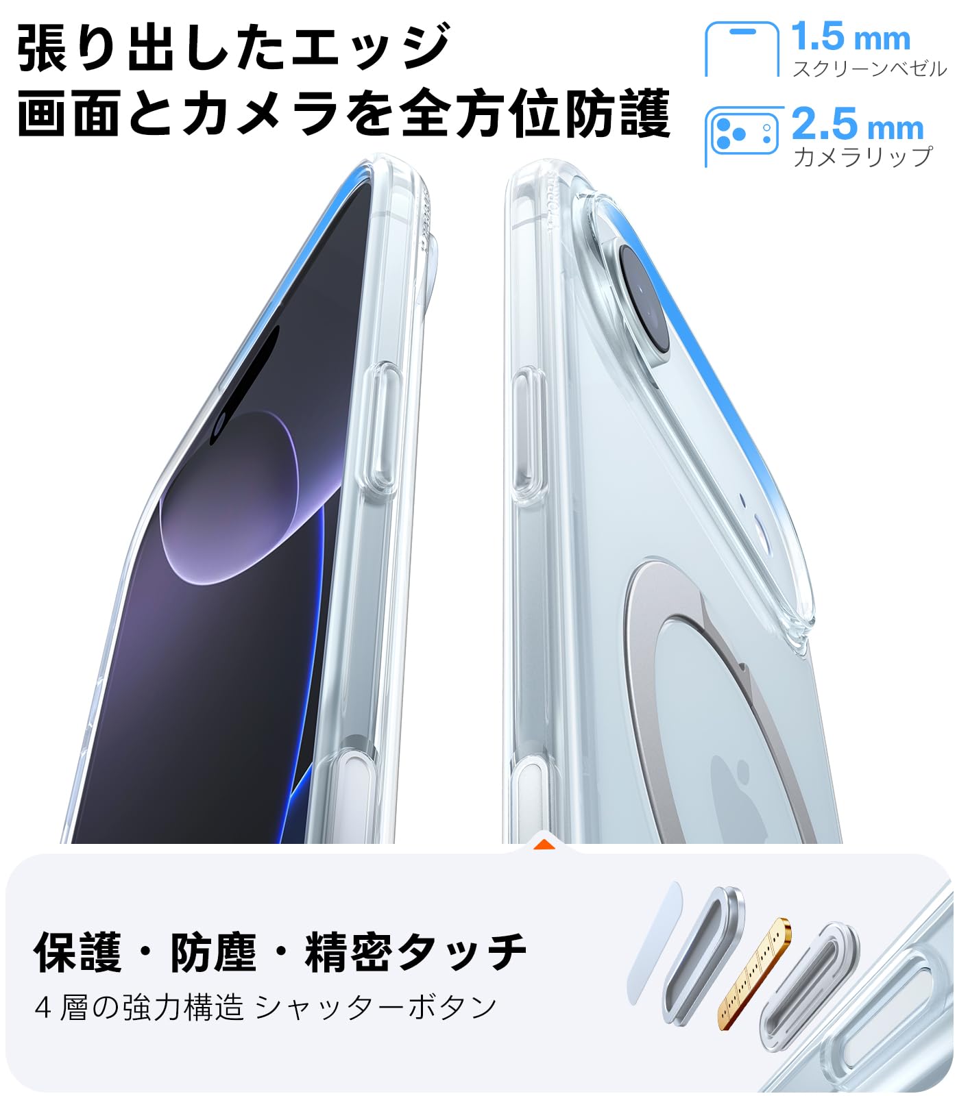 * 【米軍規防摔認証|高額修理代節約】2025 年最新 3 層構造ショックアブソーバーを搭載,航空級アルミフレーム+耐摩耗 PC で軍規級保護。米軍規格 MIL-STD-810H 認証取得(認証番号:GZMR220300651),コーナー 0.5mm 段差設計で画面・カメラを全面保護,3m 高さから 100 回落下でも亀裂防止。薄型デザインで iPhone の本来のデザインを損なわず,グリップ性向上で滑落リスクを低減。