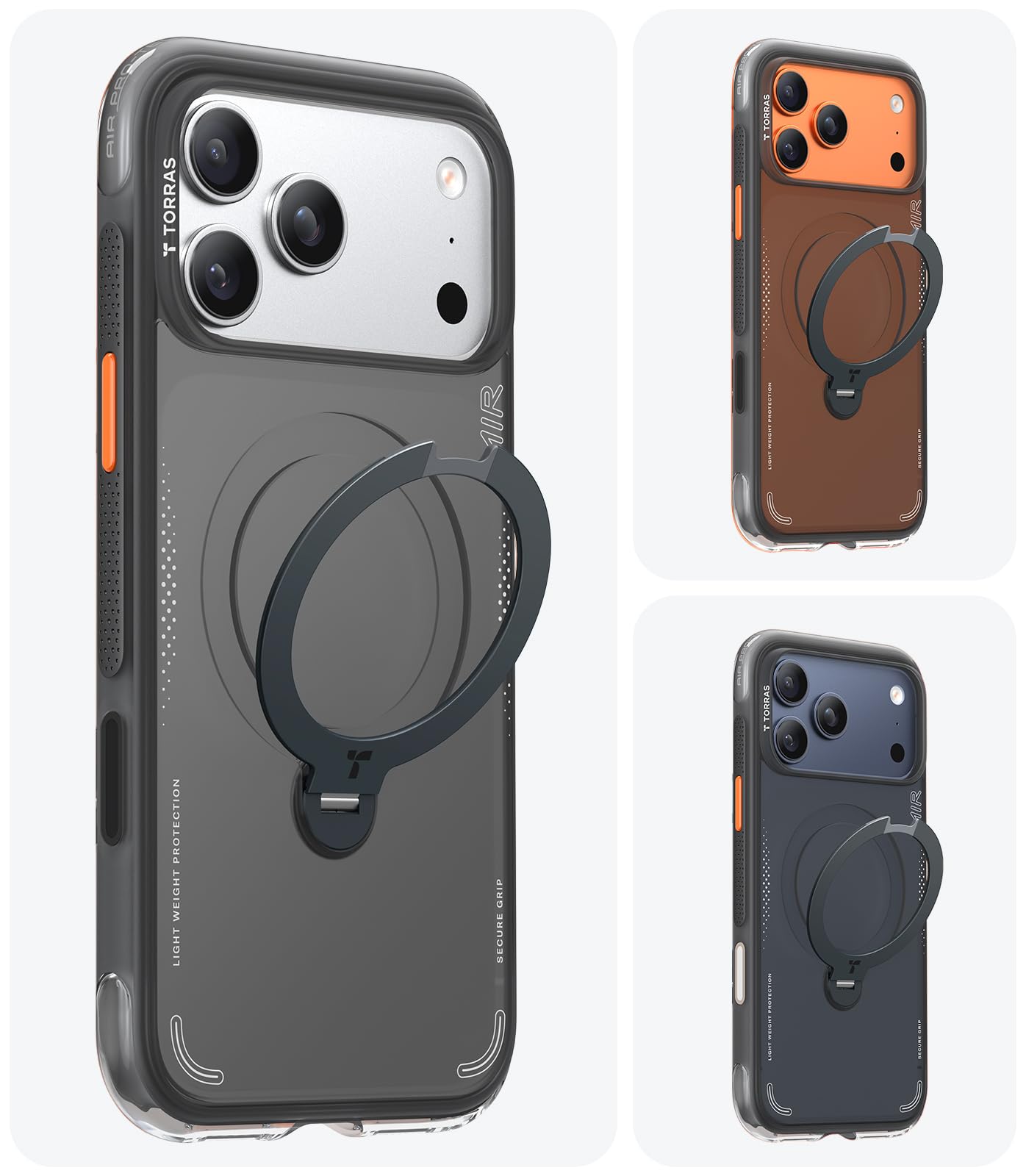 TORRAS iPhone 17 Pro Max 6.9 インチ 用 ケース【エアバッグ 超強保護・米軍 MIL規格 】リング スタンド MagSafe対応 Ostand Q3 Air 360°定点回転 縦横両対応 MagSafe対応 ワイヤレス充電 カメラコントロールボタン付き 登山・アウトドア活動 黒影・ブラック